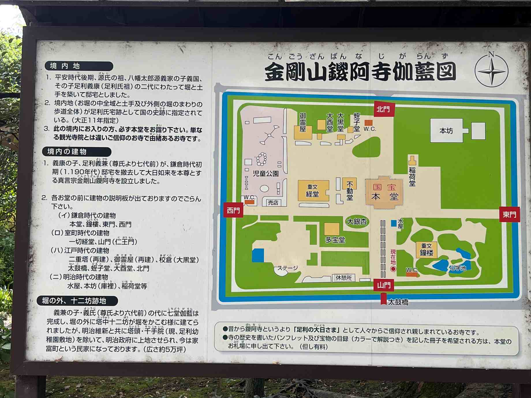 1196年、義国の孫にあたる足利義兼は館内に持仏堂を建て、御本尊に大日如来を祀ります。これが鑁阿寺の始まりです。 その後、鑁阿寺は足利氏の氏寺として着々と整備されていきます。本堂は義兼の子 義氏によって建立されました。 |