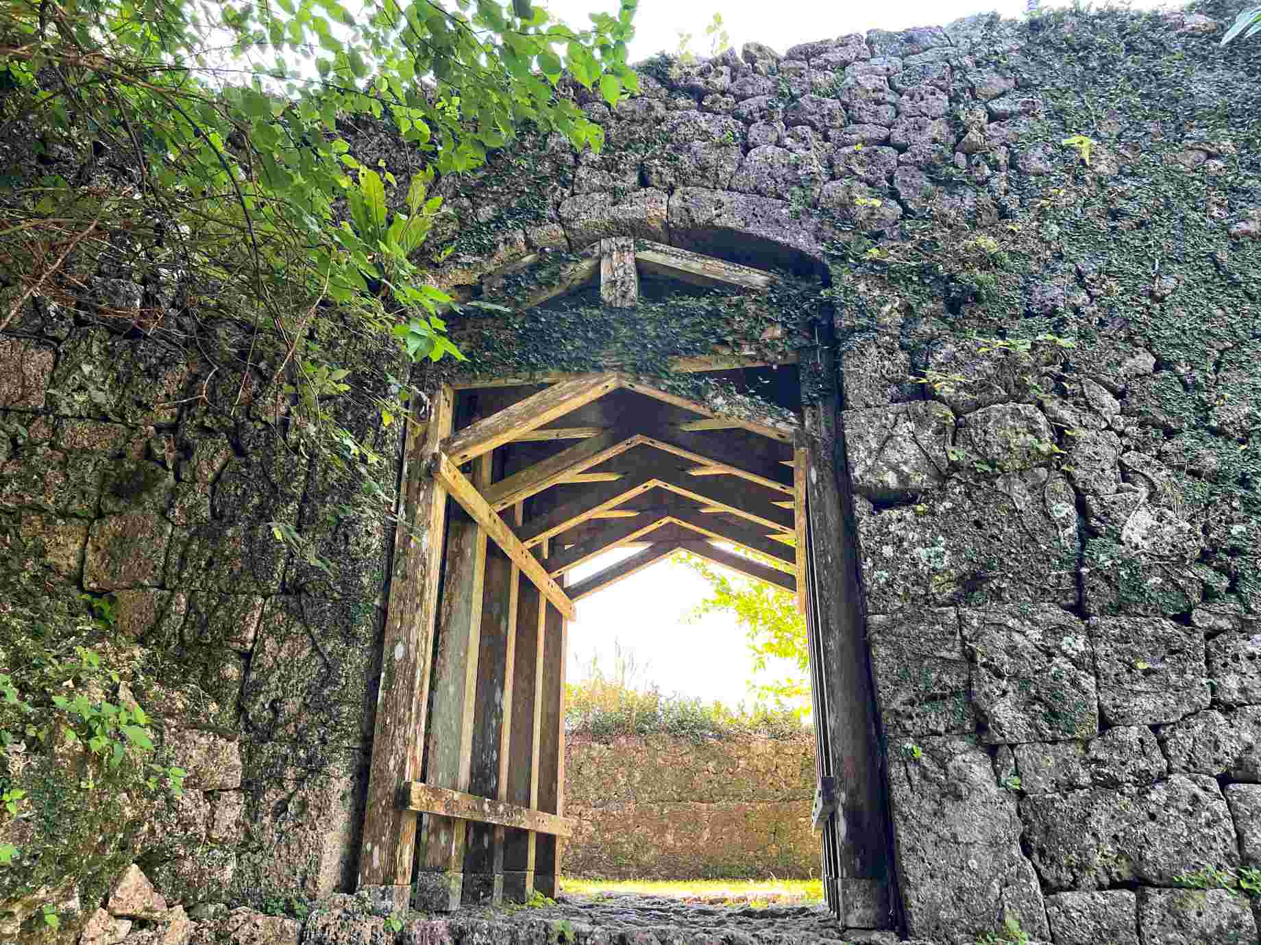 一枚岩をくり抜いて造られた主郭の城門が強烈な印象を与えていた。 |