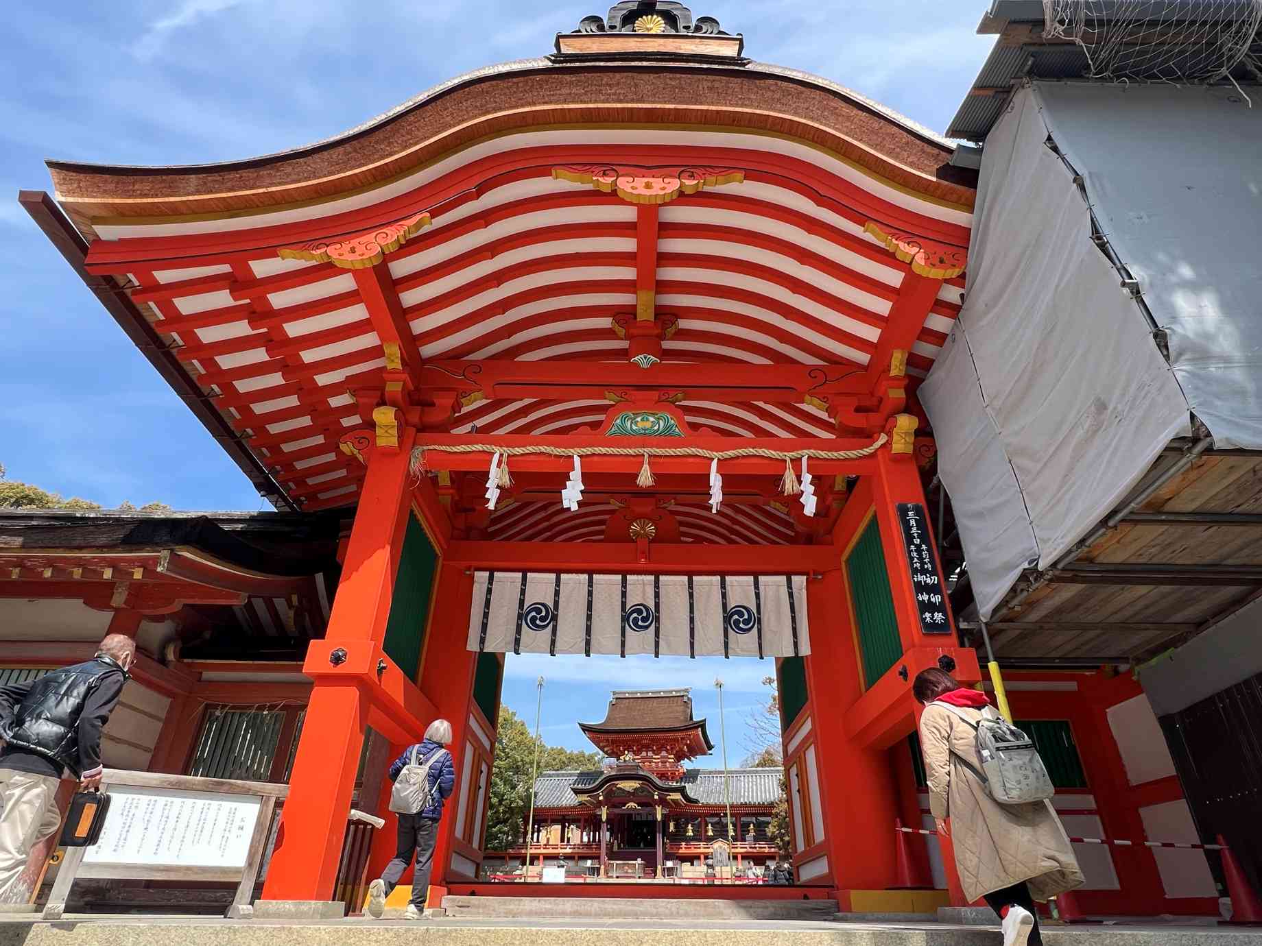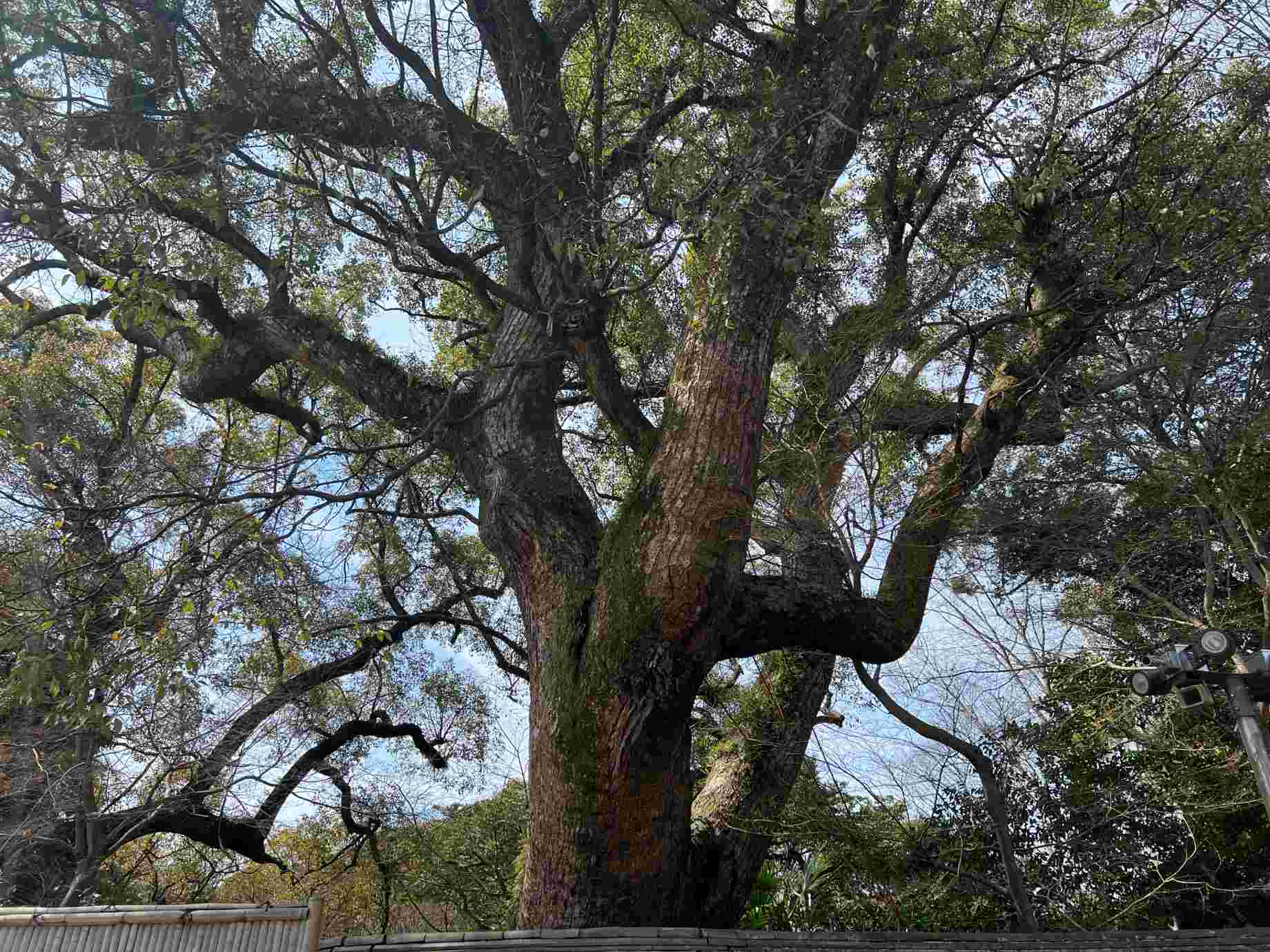 境内には楠木正成が1334年に必勝を祈願し奉納した楠が大きな枝を広げていた。