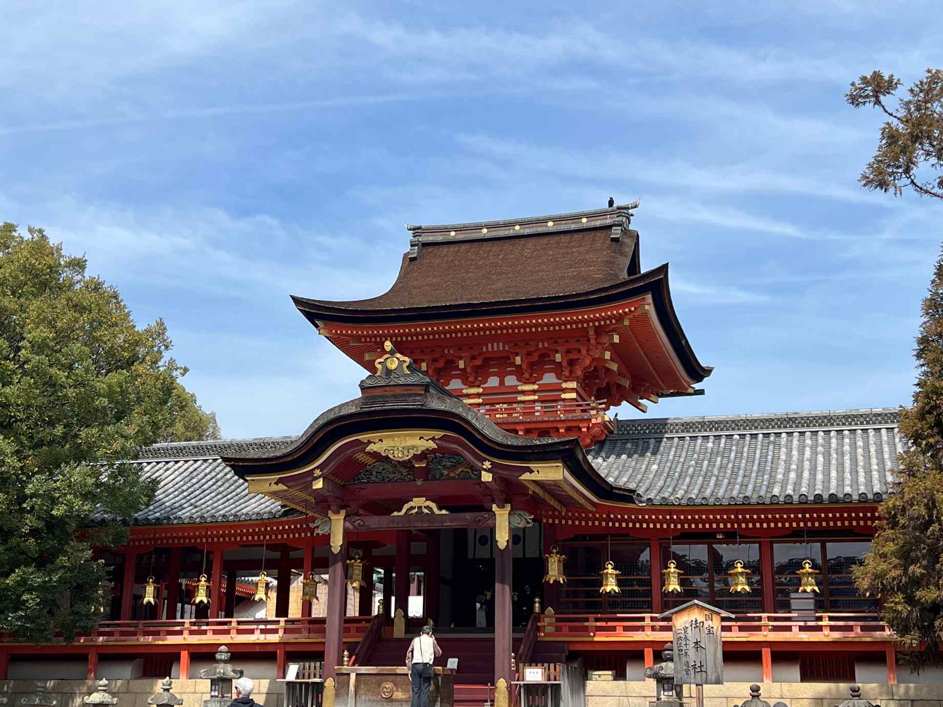 本殿は外殿と内殿に分かれており、二つの建物が重なる軒には織田信長が寄進した黄金の樋がかかっている。お金に困ったら樋から金をとって売ればいいという。さすが信長だ。