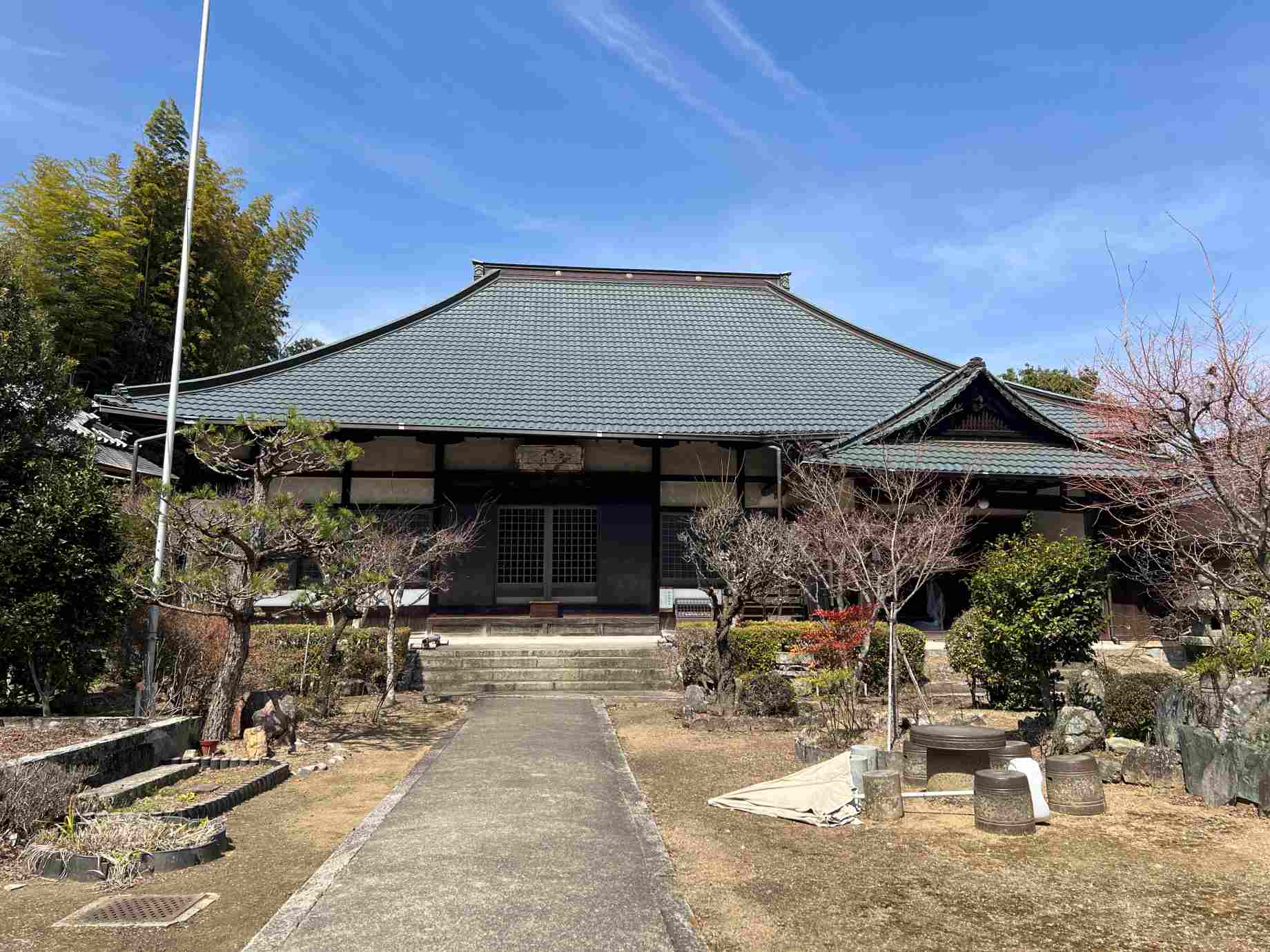 本堂は1975年再建で、書院は江戸時代初期、伏見城の遺構とされ、襖絵は京狩野派二代目・狩野山雪の作と推定される。 |