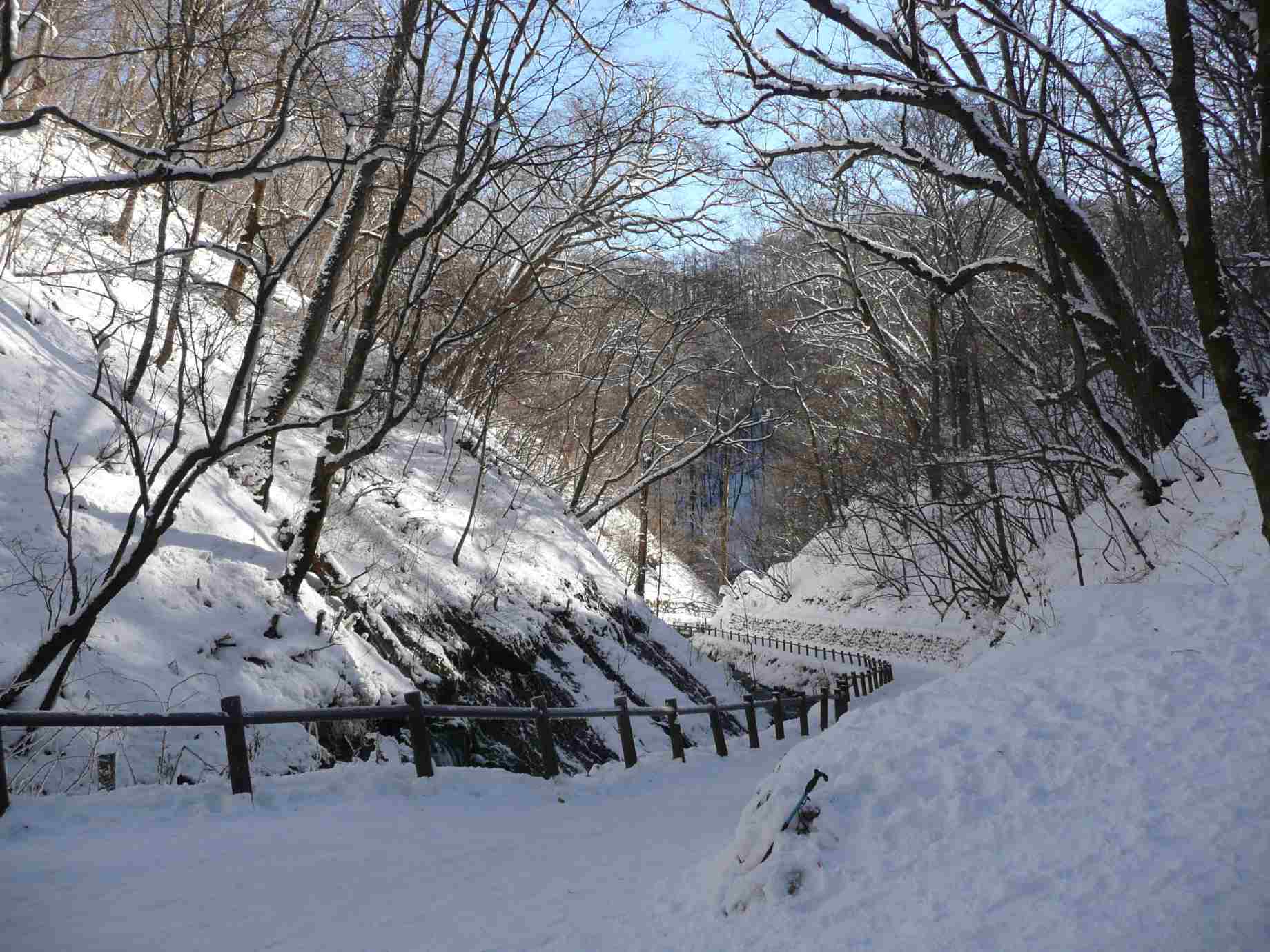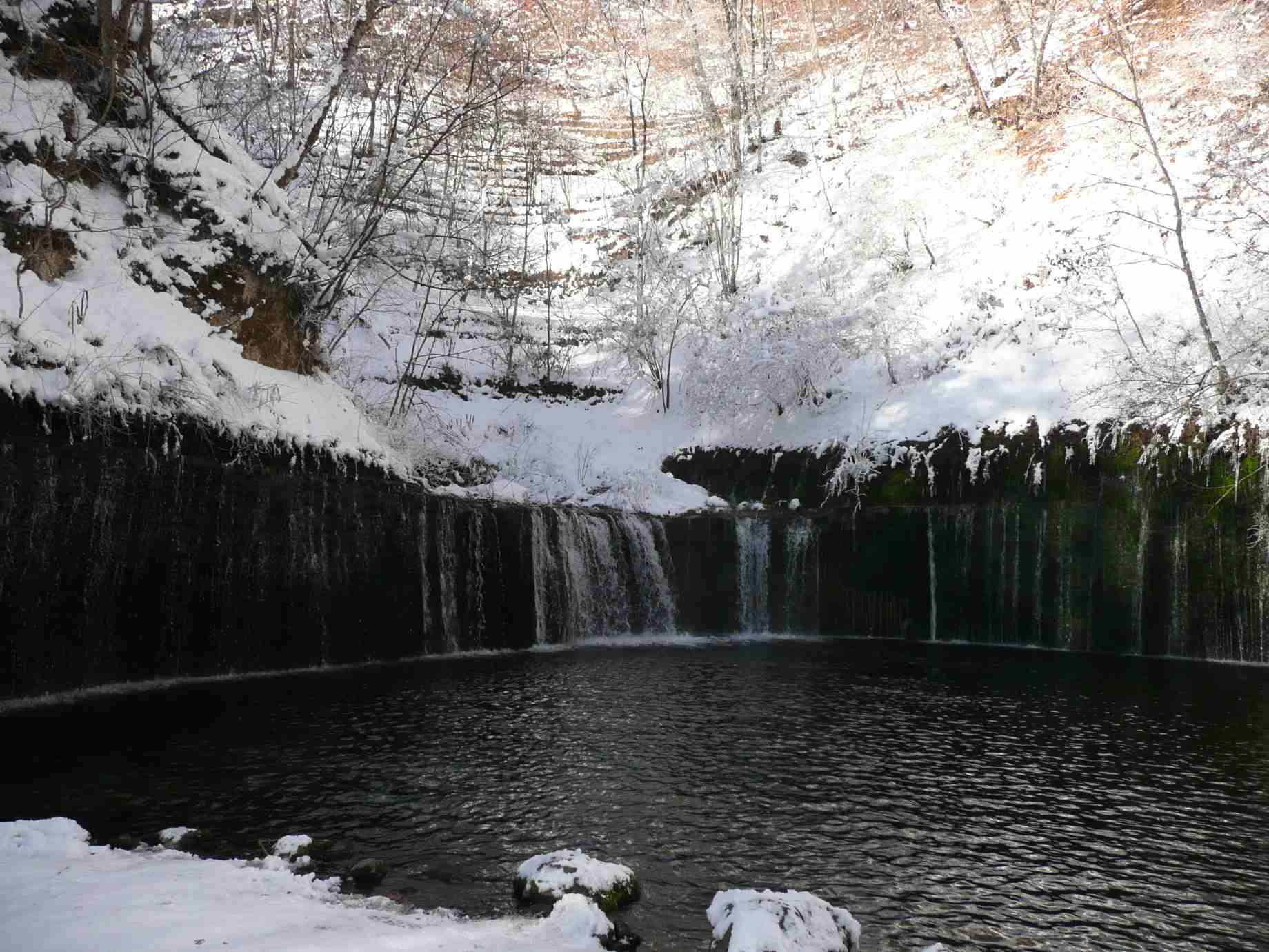 車道がこんな状態なので、滝のまわりも雪と氷で包まれている。 |