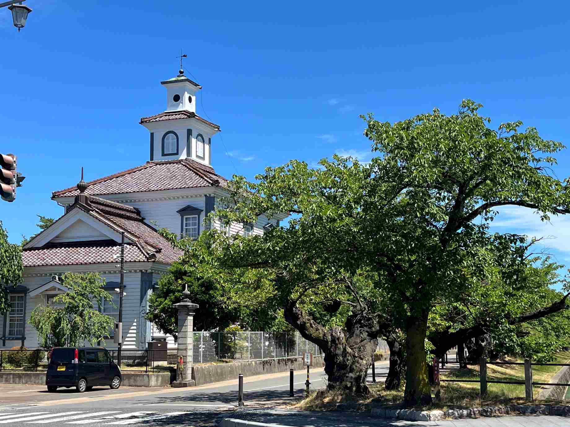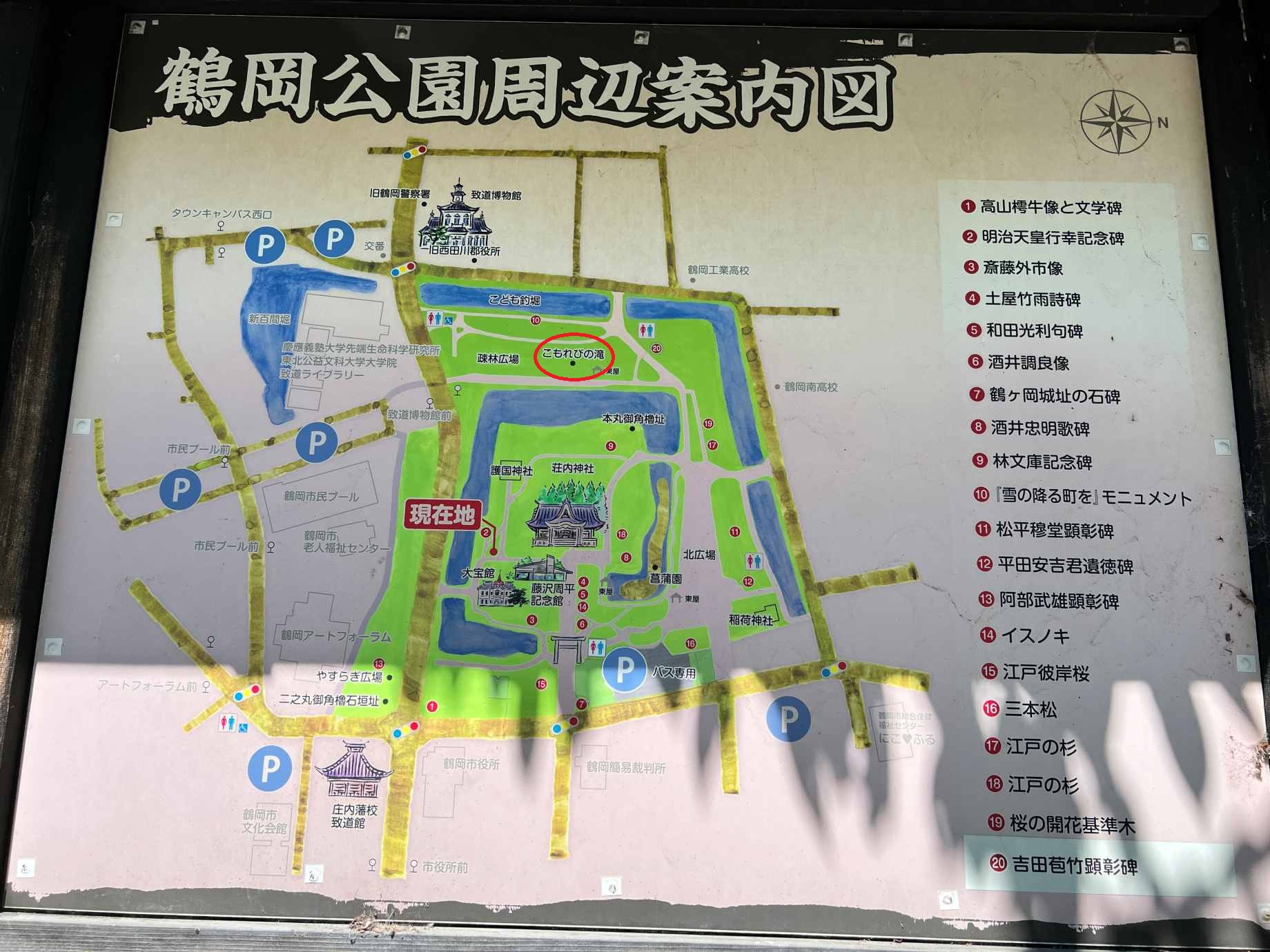 鶴岡公園西駐車場に車を停めて歩き始めると庄内藩主酒井家の御用屋敷地だった場所に立つ致道博物館(旧西田川郡役所、旧渋谷家住宅、旧鶴岡警察署庁舎など)が見えます。 |
