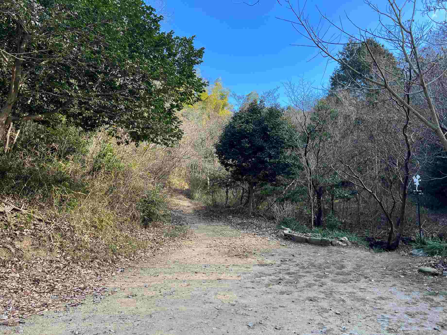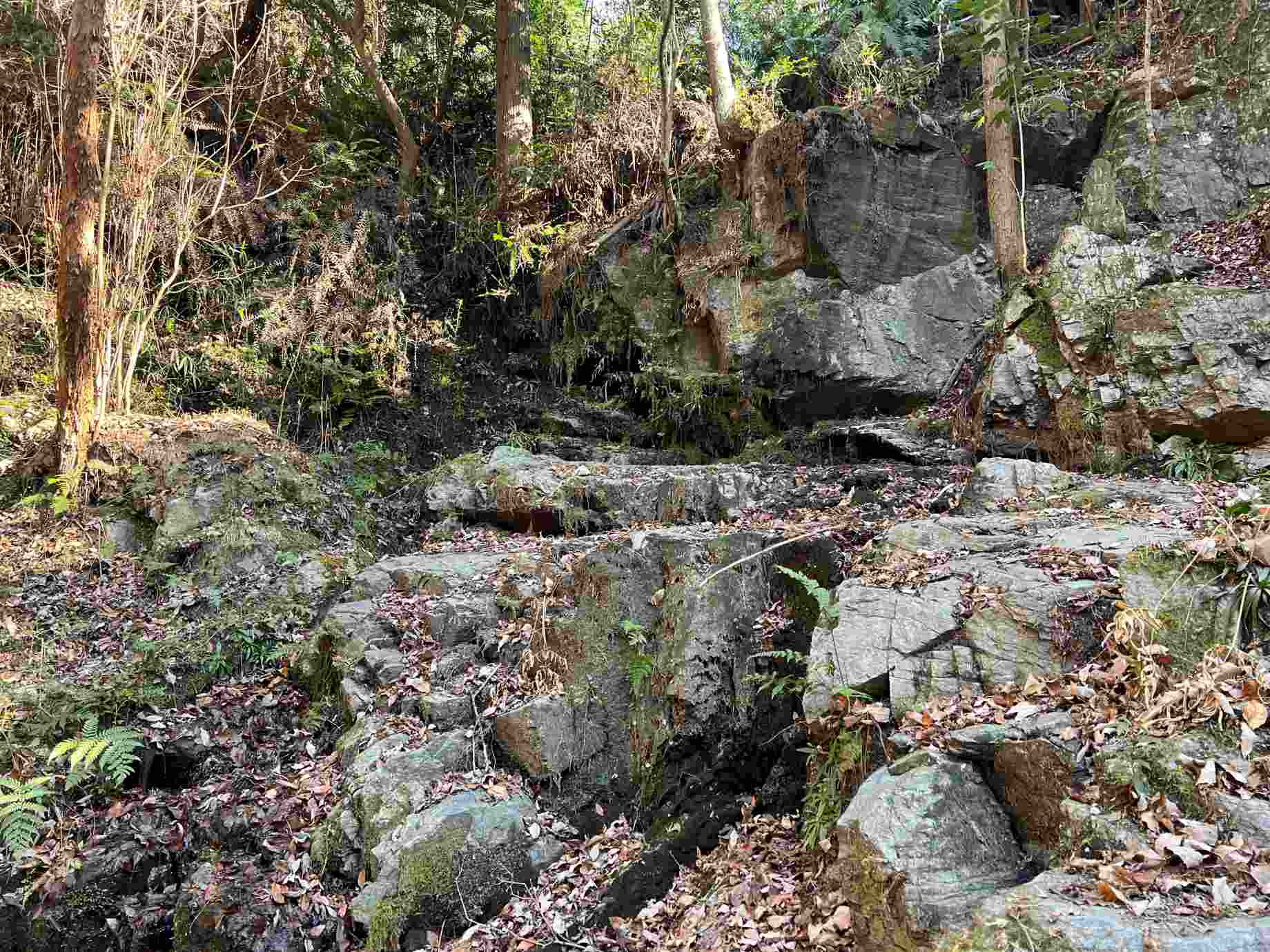 山道をそのまま進み大井池方面へ向かう途中、猿田彦三河神社の参道入口に滝がかかっていた。 |