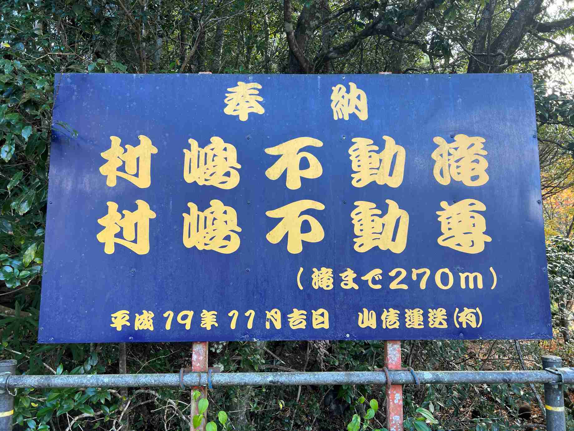 | 村嶋不動滝(ムラシマフドウタキ) | 落差12m | 時間5分 | 評価7/10 | |