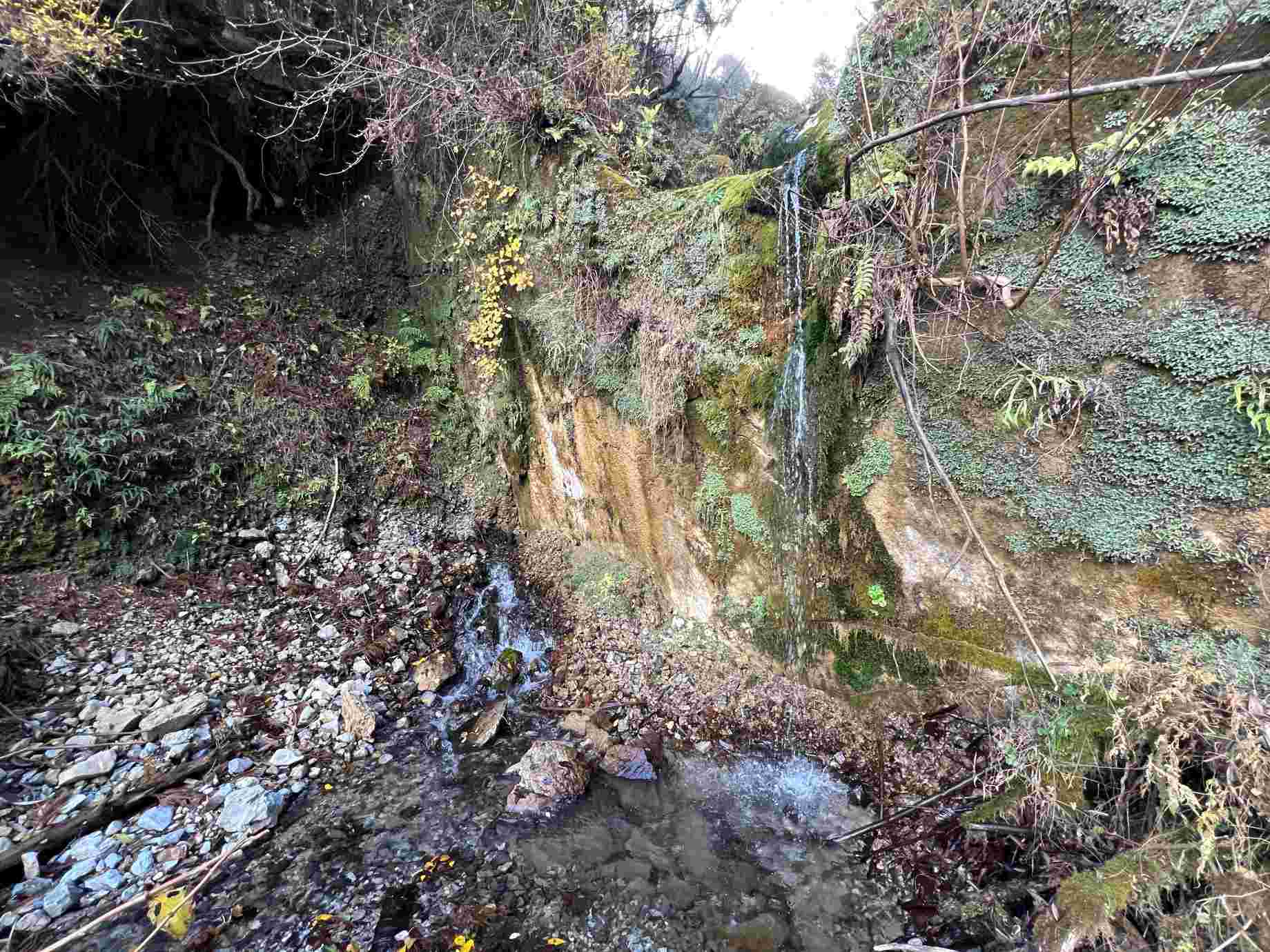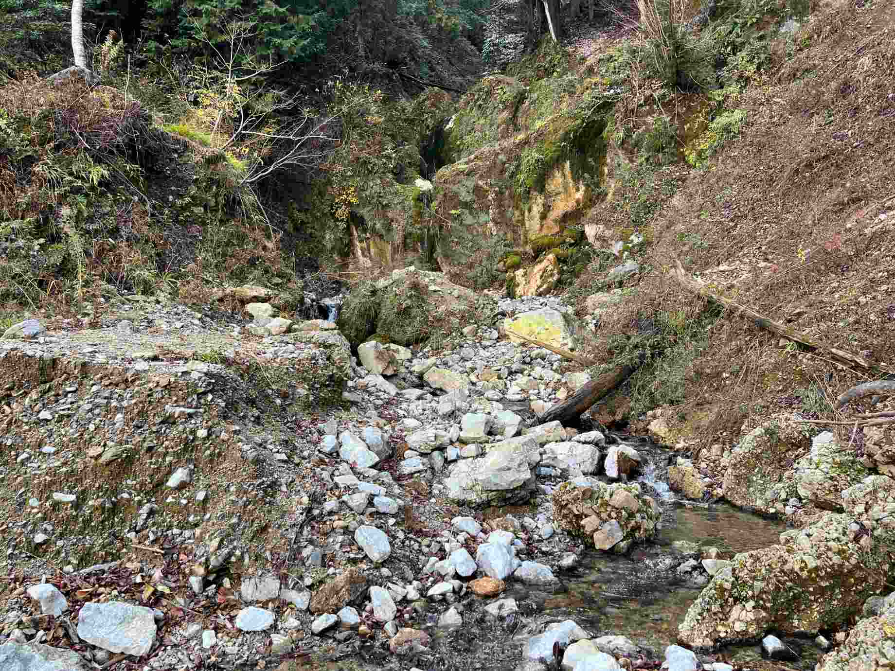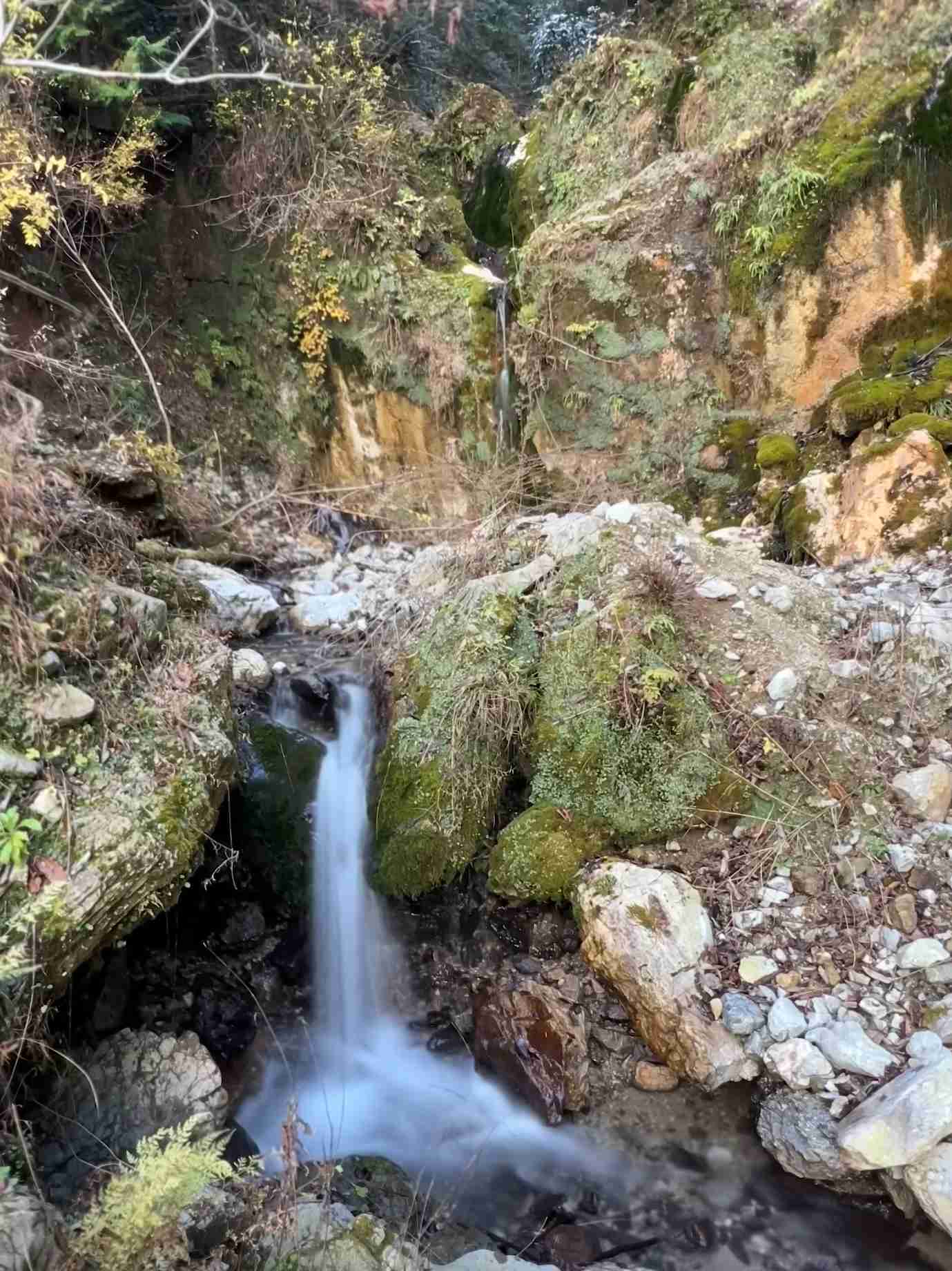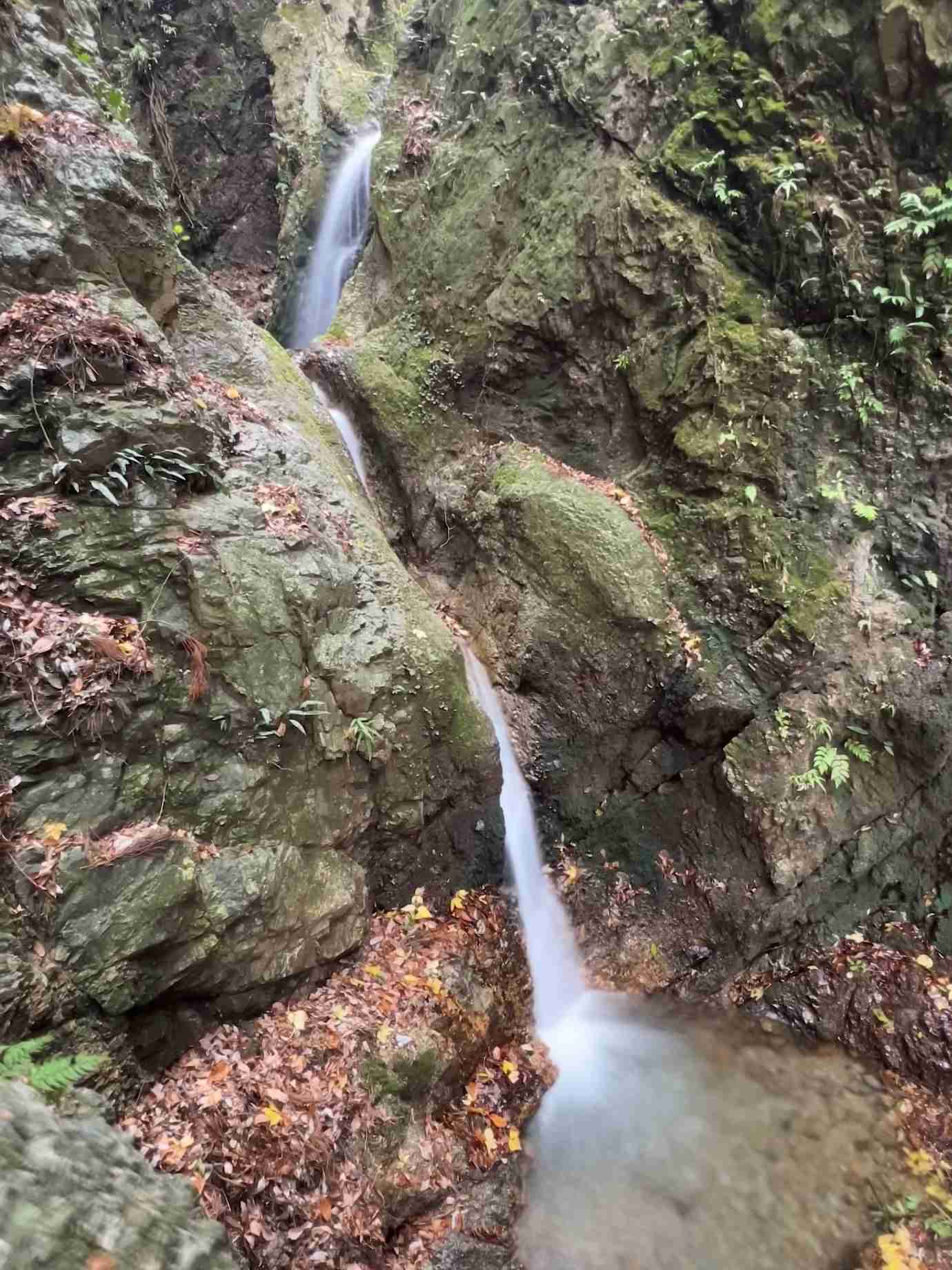 本流は左奥の段瀑で、くの字を描きながら柔らかく落ちていく。その姿は、山の奥に潜む静かな呼吸のようだった。滝の映像 |