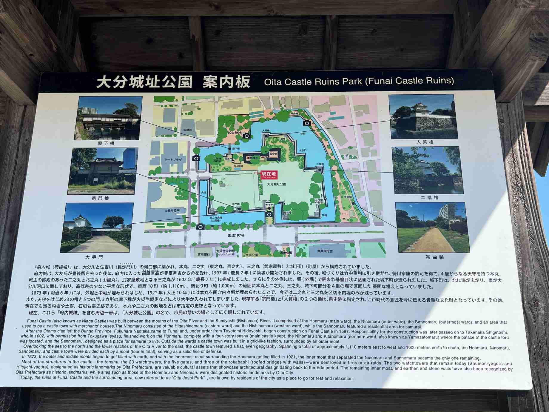 大友氏が大友宗麟の嫡子義統の文禄慶長の役での敵前逃亡により改易されると、福原直高が府内の荷落に新たに築城したのが大分府内城です。 |