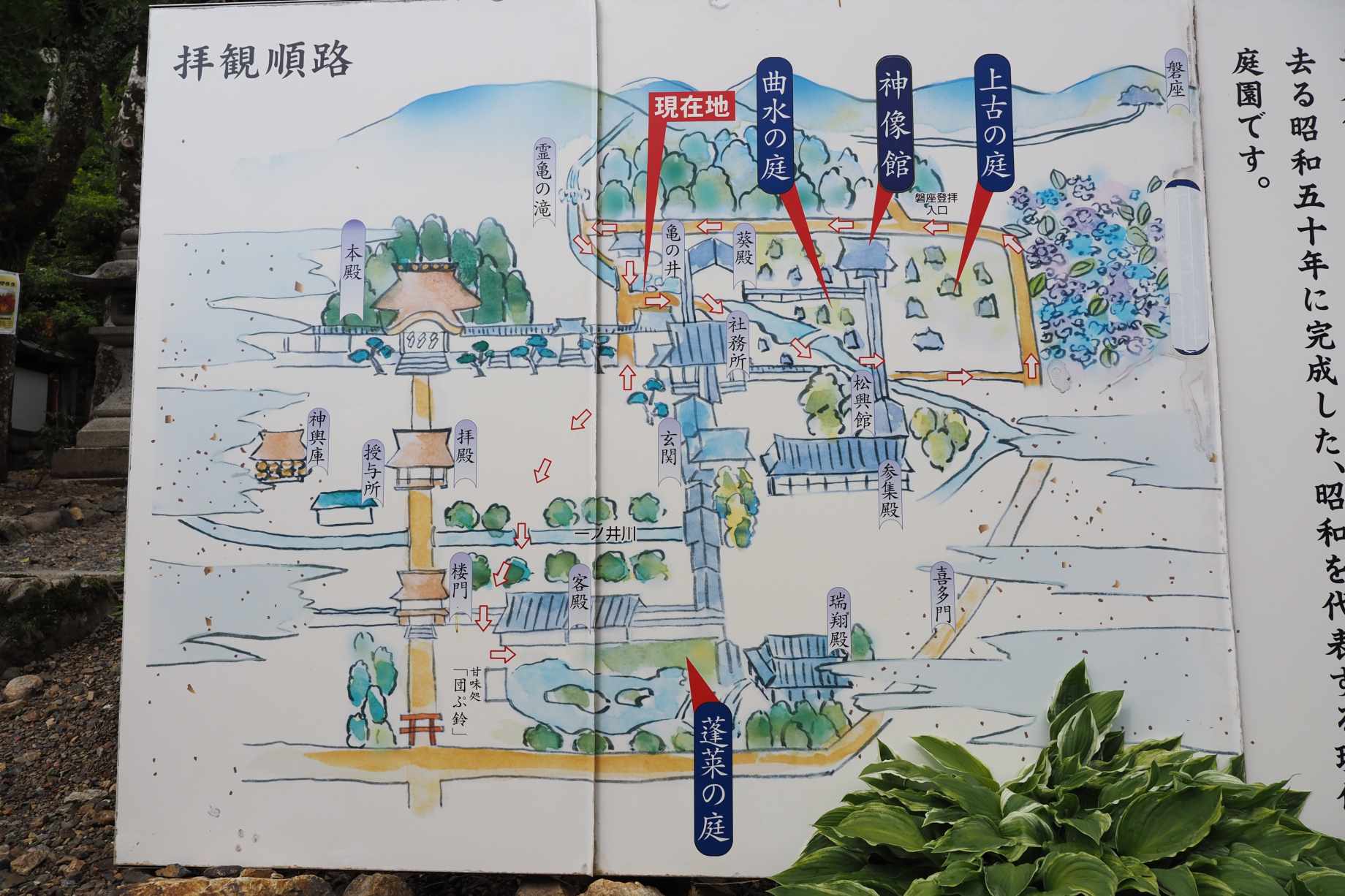 帰りがけに社務所の方から蓬莱の庭は楼門の外にあるから必ず見て行ってよと念を押されました。蓬莱とは不老不死の仙人の住む世界、すなわち仙界のことです。 |