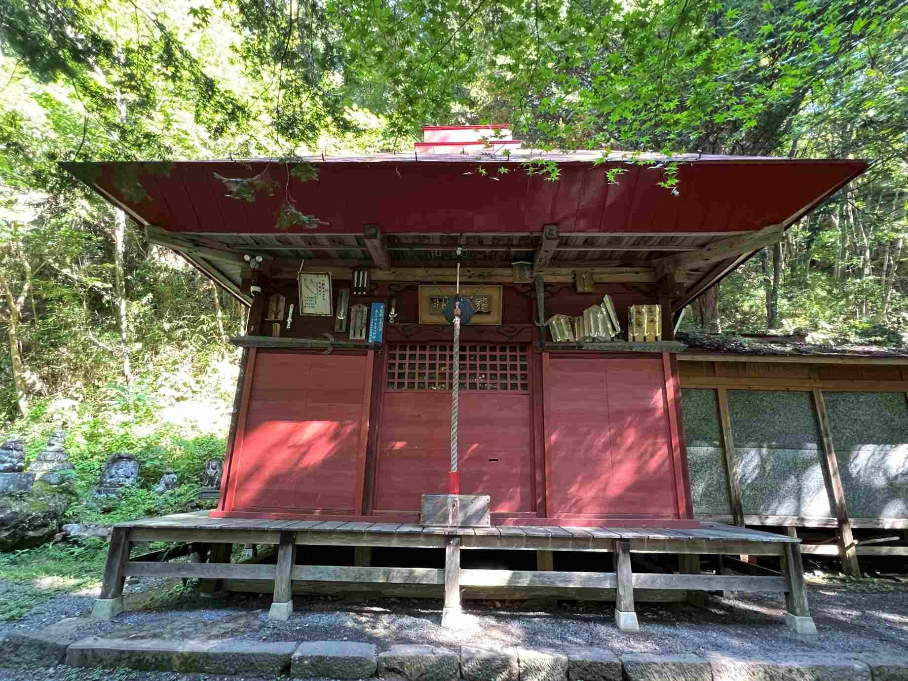 駐車場から階段を登ると不動堂があります。滝はこのお堂のすぐ先にかかります。 |