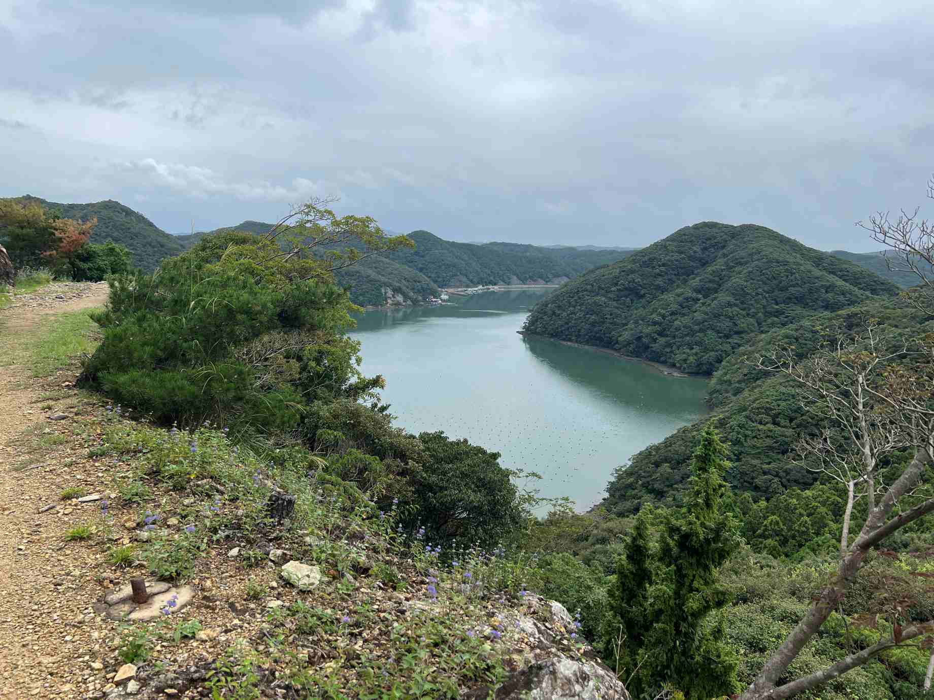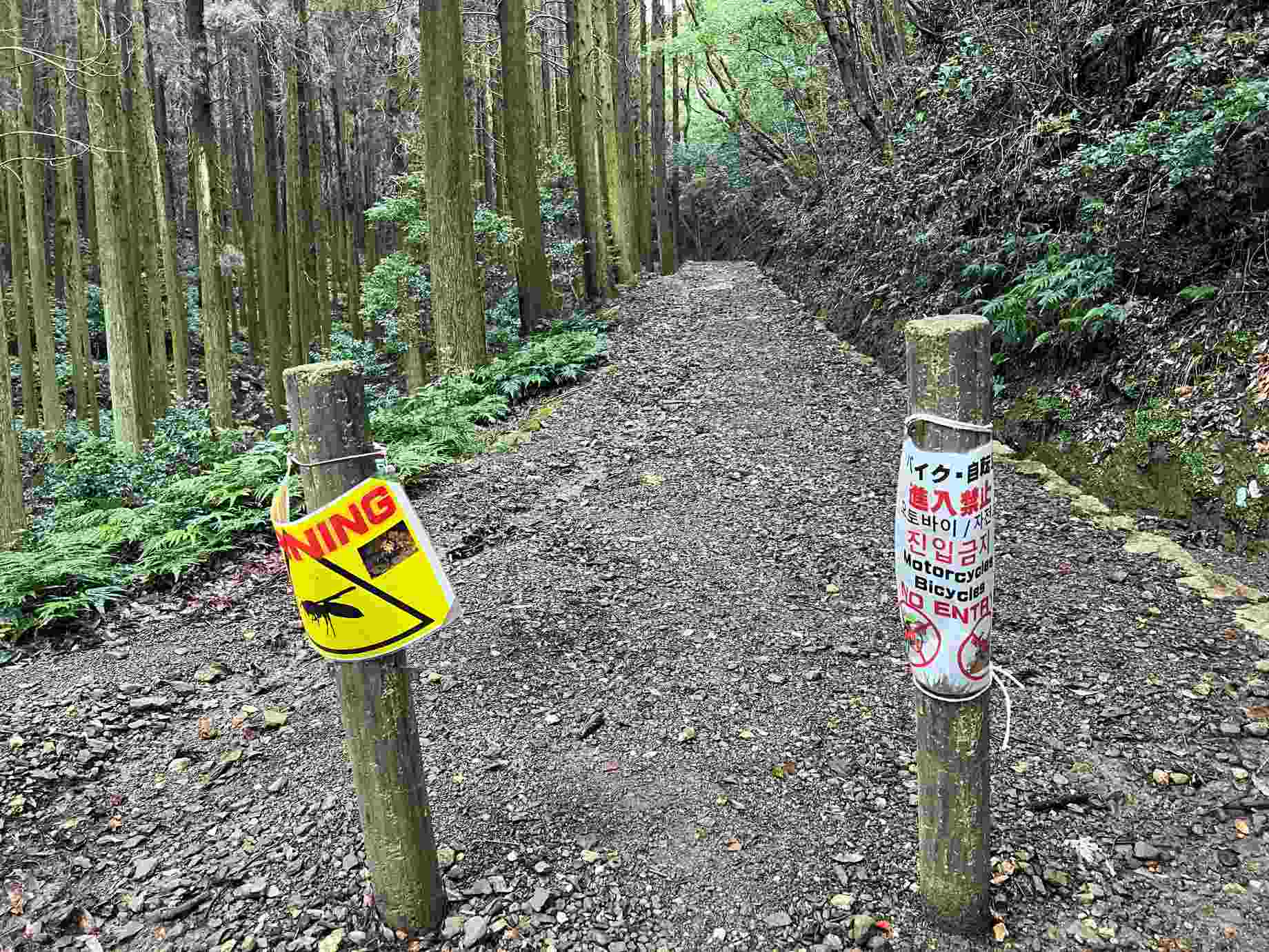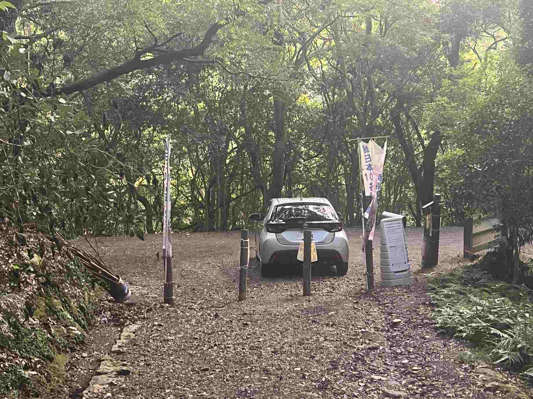入口に停めたレンタカーがようやく見えます。金田城見学に要した時間は2時間半でした。 |