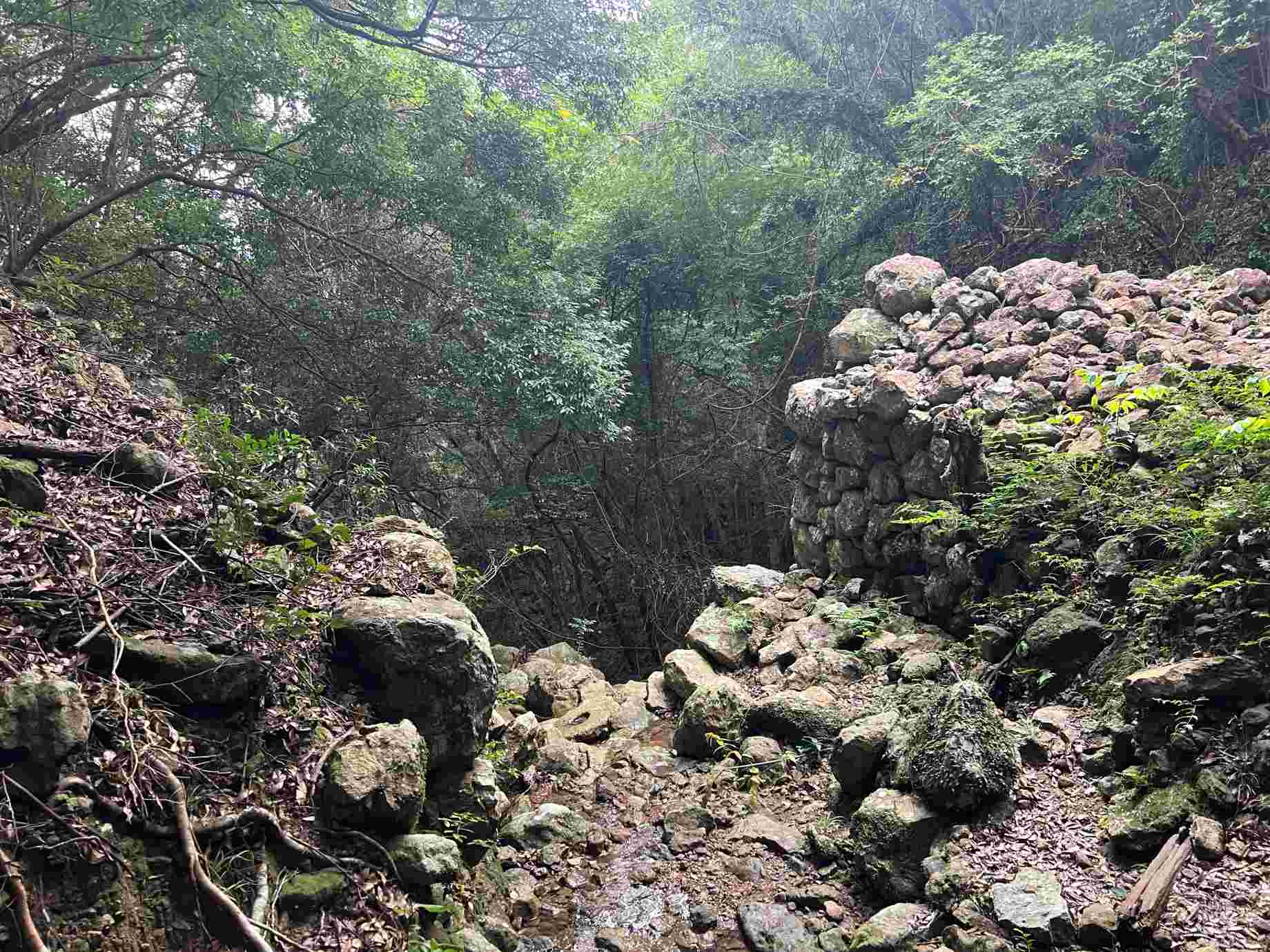 軍道を戻らずに石塁に沿って、一周することにします。 |