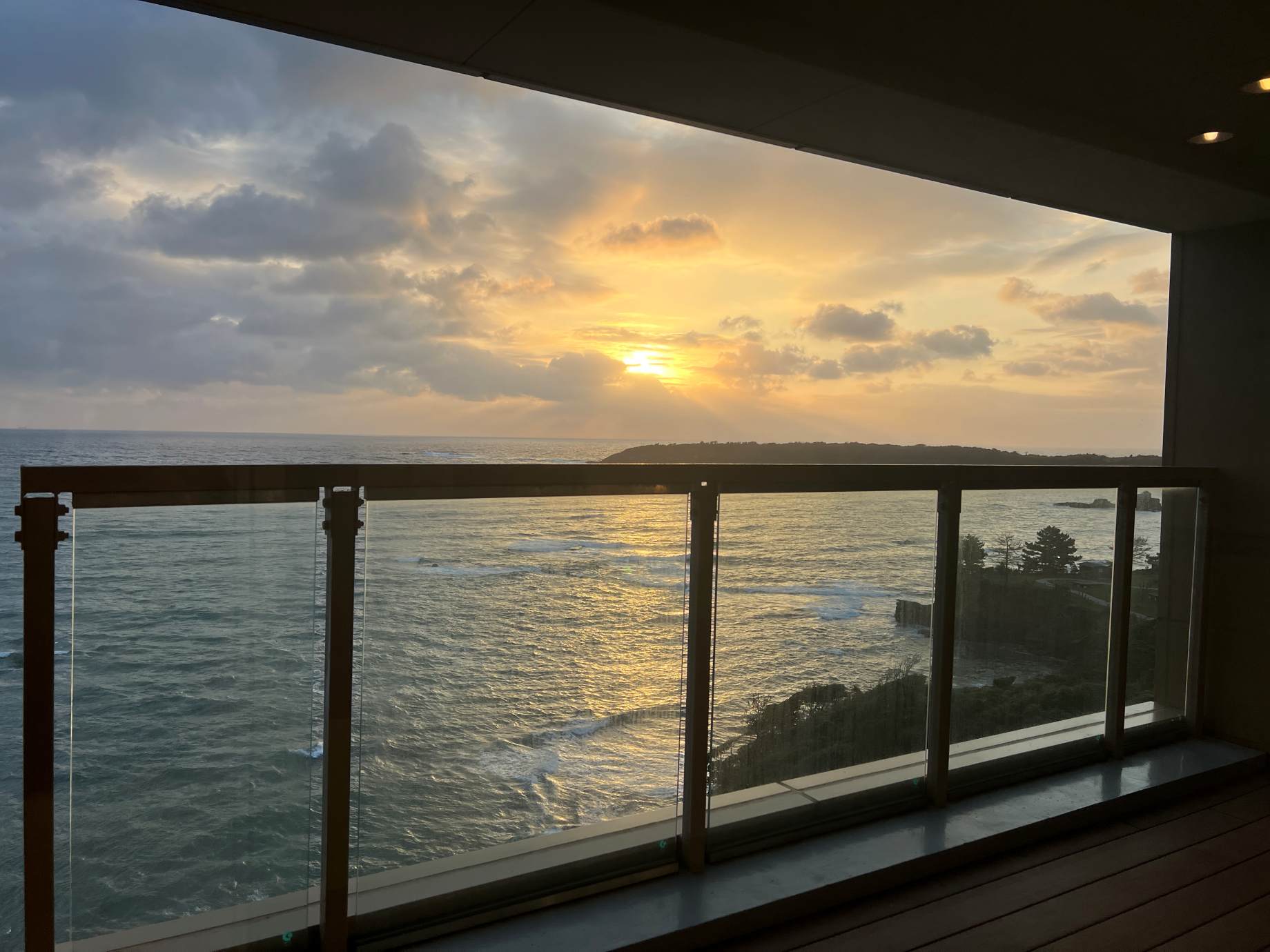 翌日の朝、ホテルの窓から日の出が見えました。 |