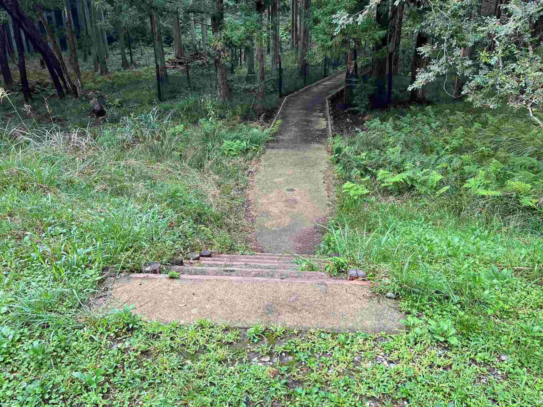 ところが途中から階段が壊れていて金具が逆に邪魔になっています。 |