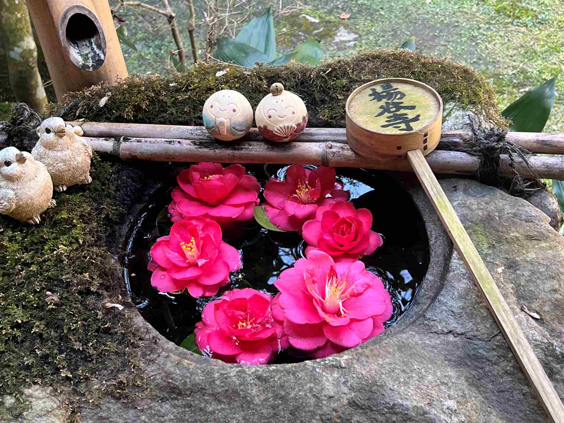 こちらは水琴窟。手水鉢の近くに設けられた地中の空洞の中に水滴を落下させ、その際に発せられる音を反響させる仕掛けで、手水鉢の排水を処理する機能も持つ。 |