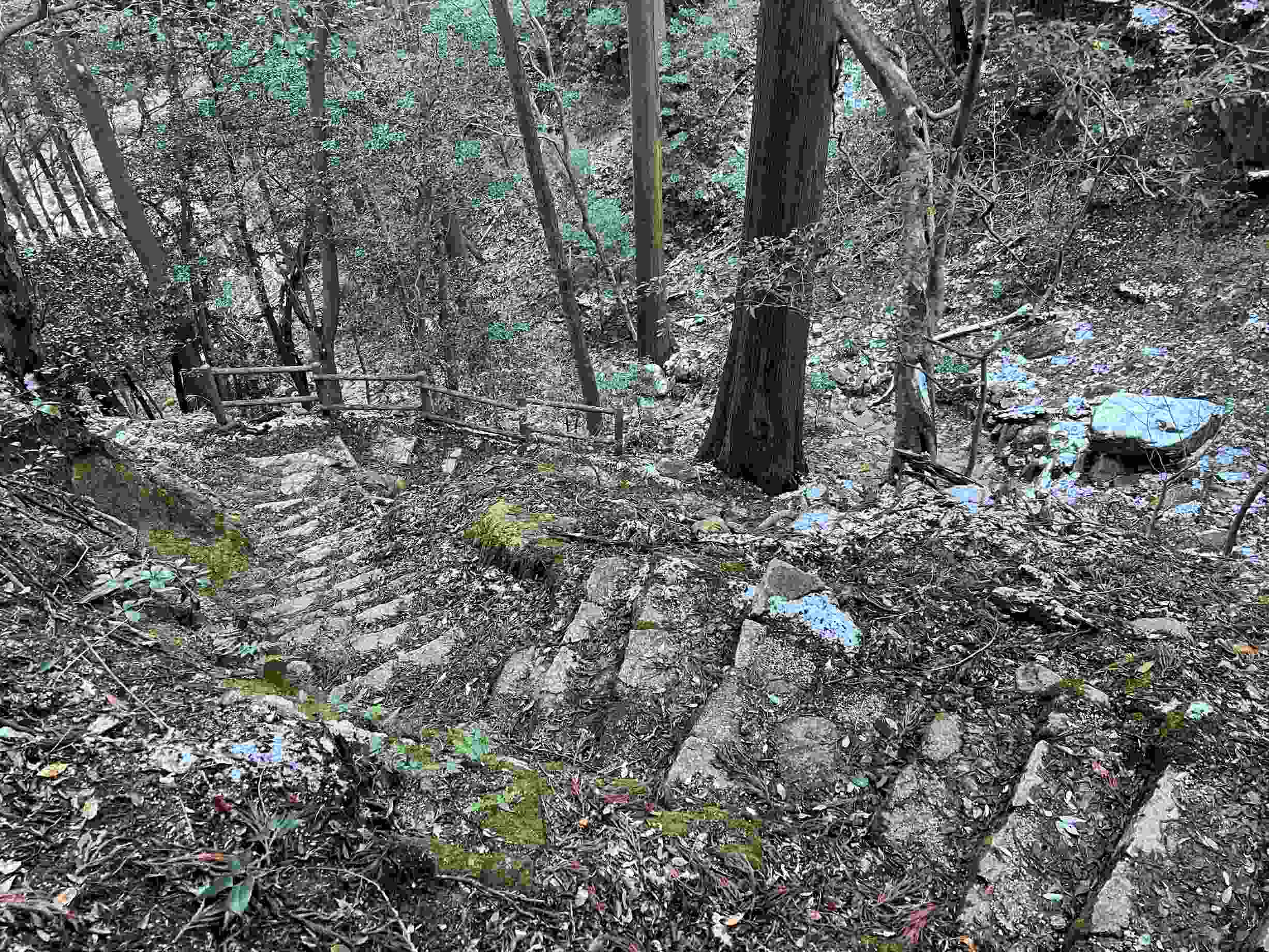 (8時20分)御岳大権現の立派な社殿を眺め、下山を開始。 |