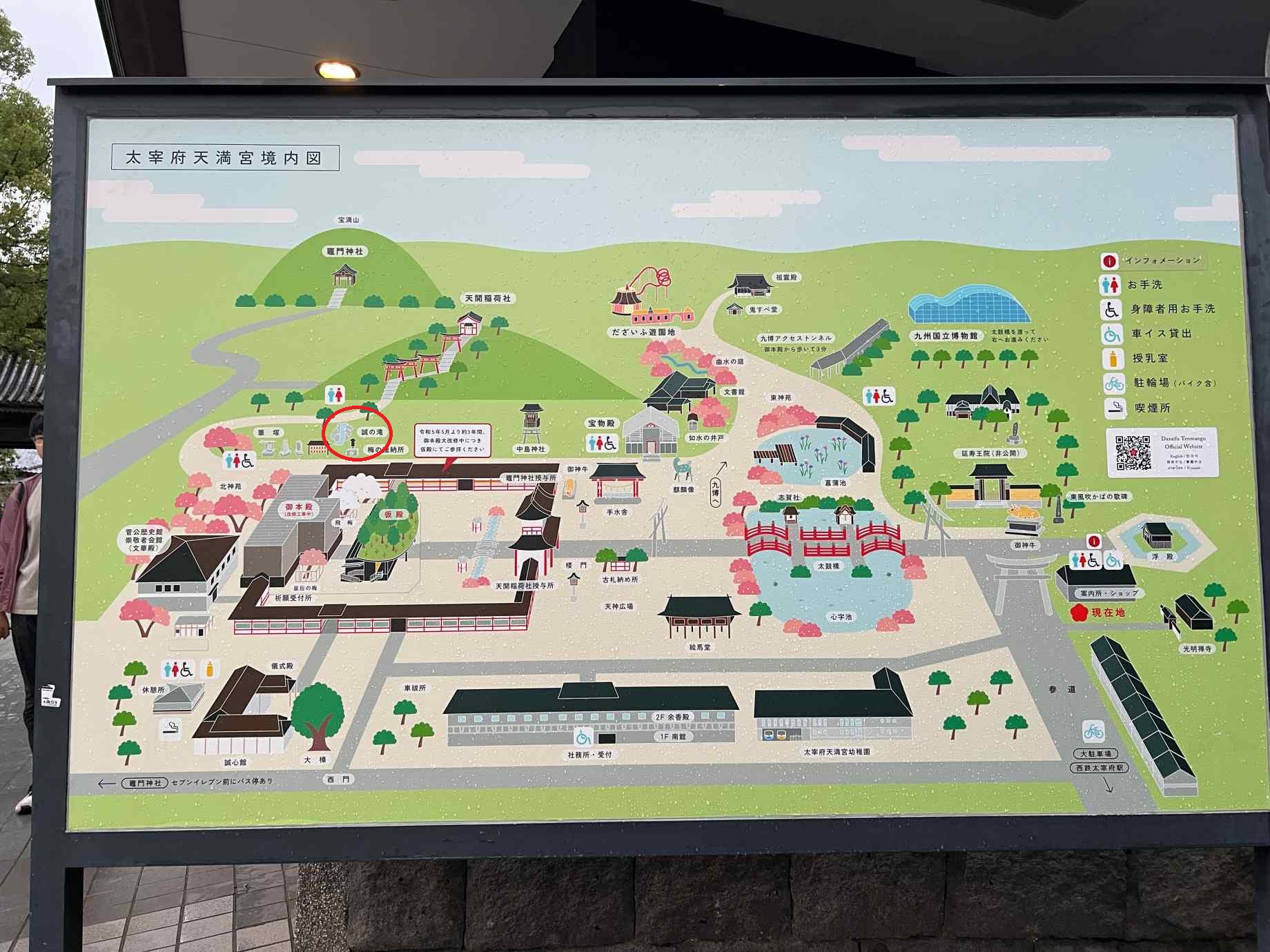 独創的なたたずまいにさすが菅原道真公をお祀りするだけのことはあると感心しましたが、実は本殿大改修に伴う仮殿で、この素晴らしい仮殿を観れるのは2026年までとのことです。 今回は誠の滝と有名な飛梅も観れませんでした。是非、再訪したいと思います。 |