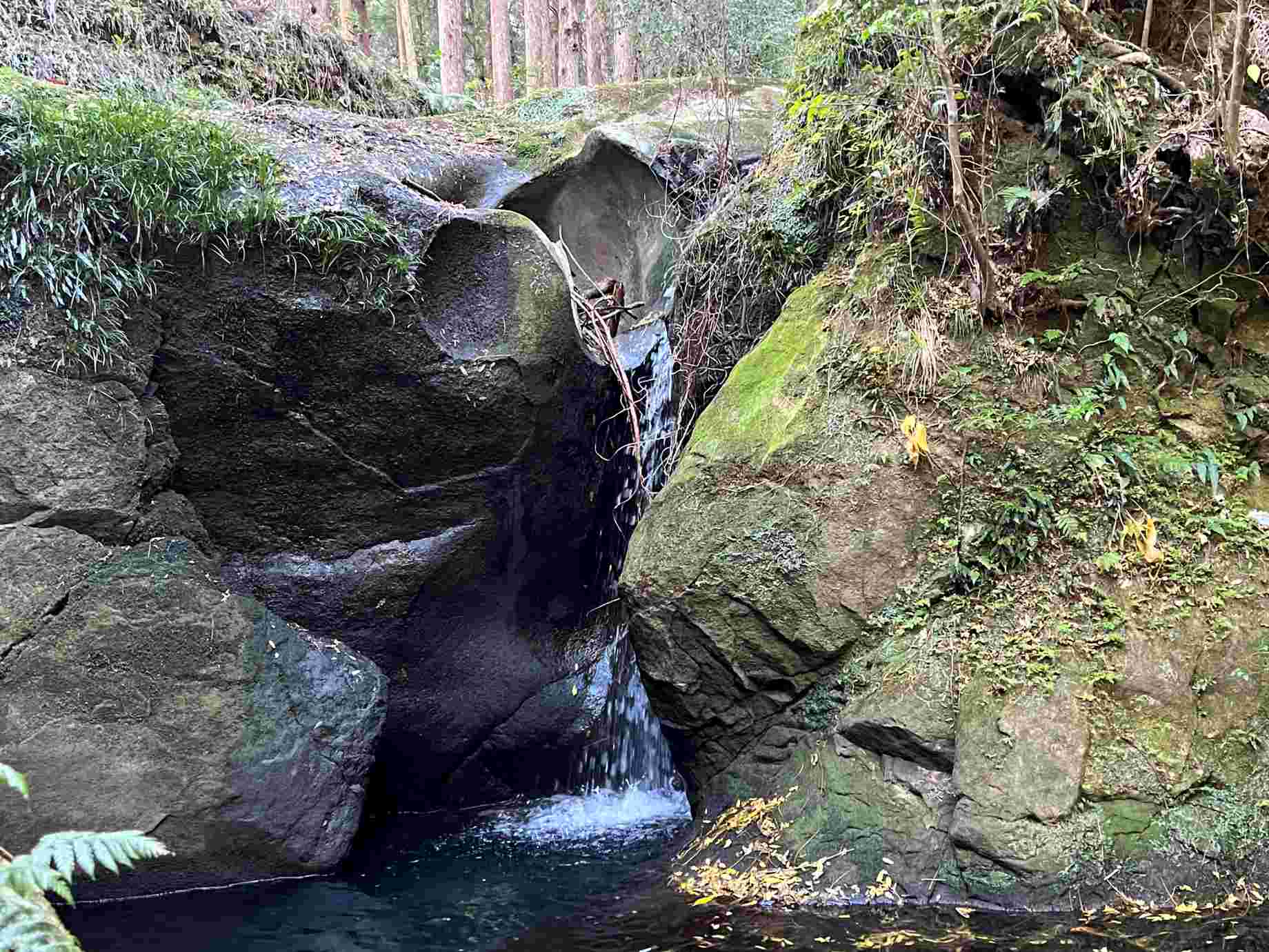イガミ滝の名前の由来は、滝の流れや岩盤が「歪んでいる」ことから関西弁の「いがむ(歪む)」に由来すると考えられています。すなわち「歪んだ滝」という意味合いで名付けられたのでしょう。 滝の映像 |