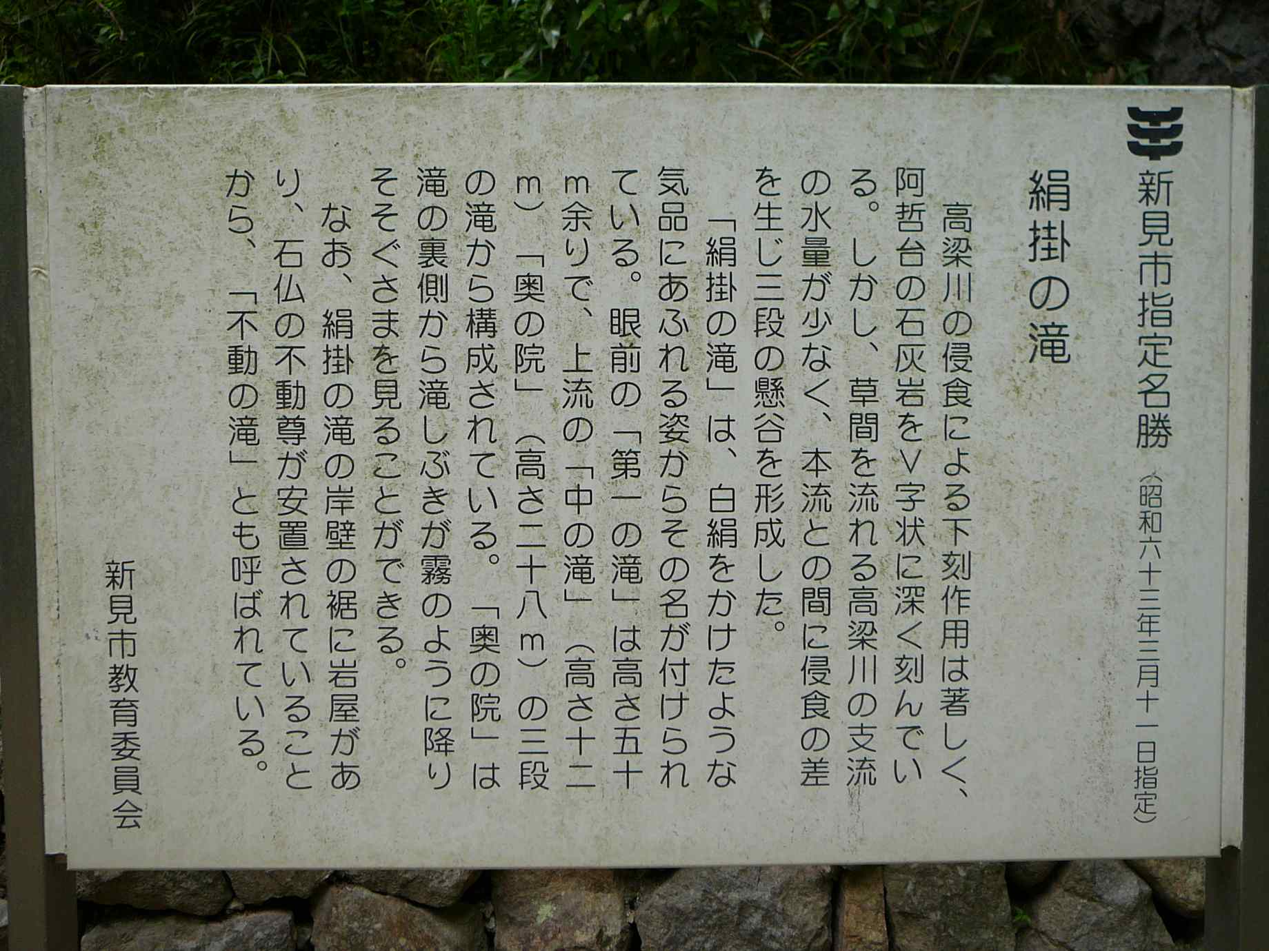 | 絹掛の滝(キヌカケノタキ) | 落差55m | 時間0分 | 評価8 |