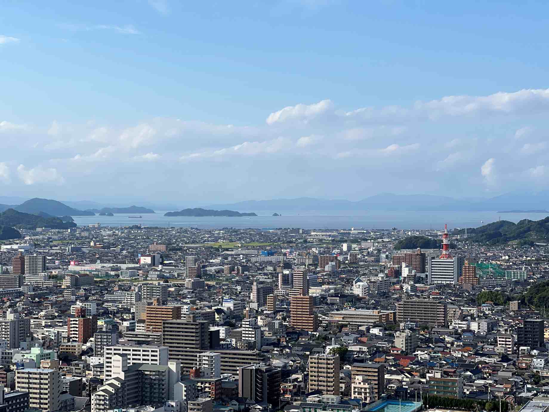 天守からは人口50万人、四国随一の大都会の松山市街、さらには瀬戸内海も見えます。 |