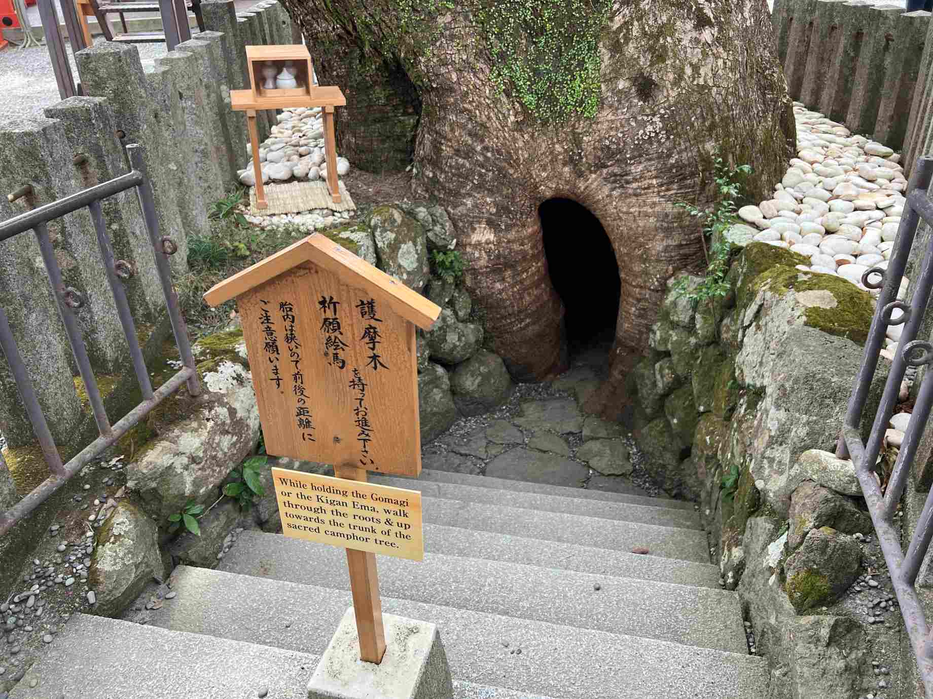 拝殿の右手には、平重盛が手植えしたと伝わる大楠が堂々と立っていた。 |