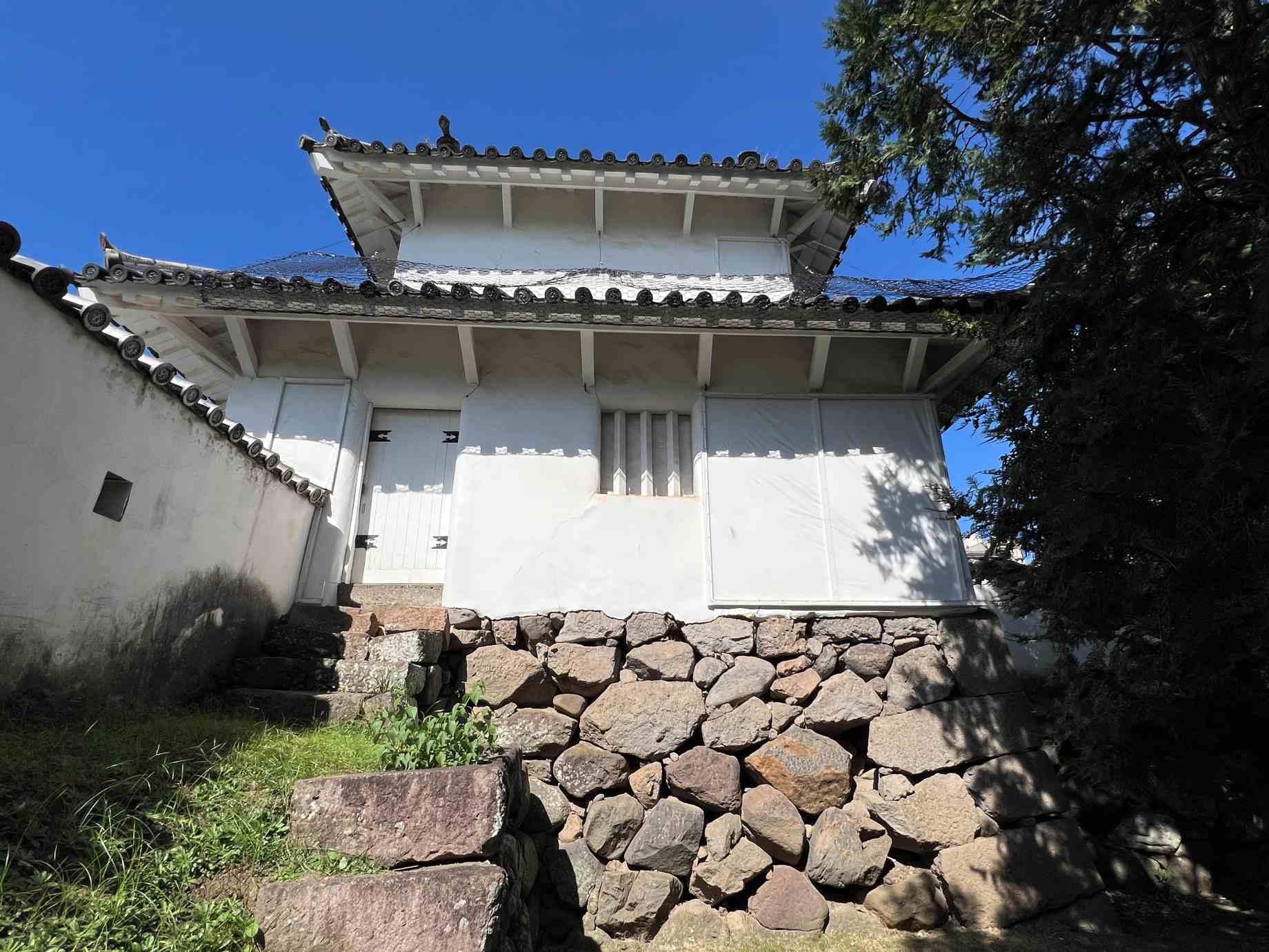 第二次世界大戦の空襲により大手門と櫓3棟が焼失し、現在はこちらの宗門櫓と天守裏の人質櫓が残っています。 |