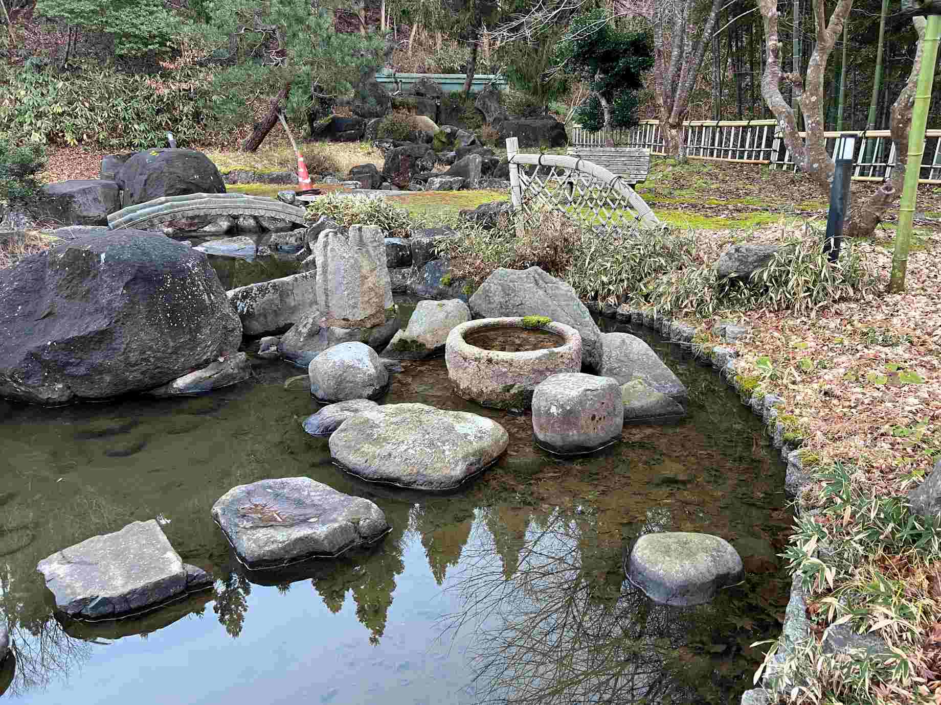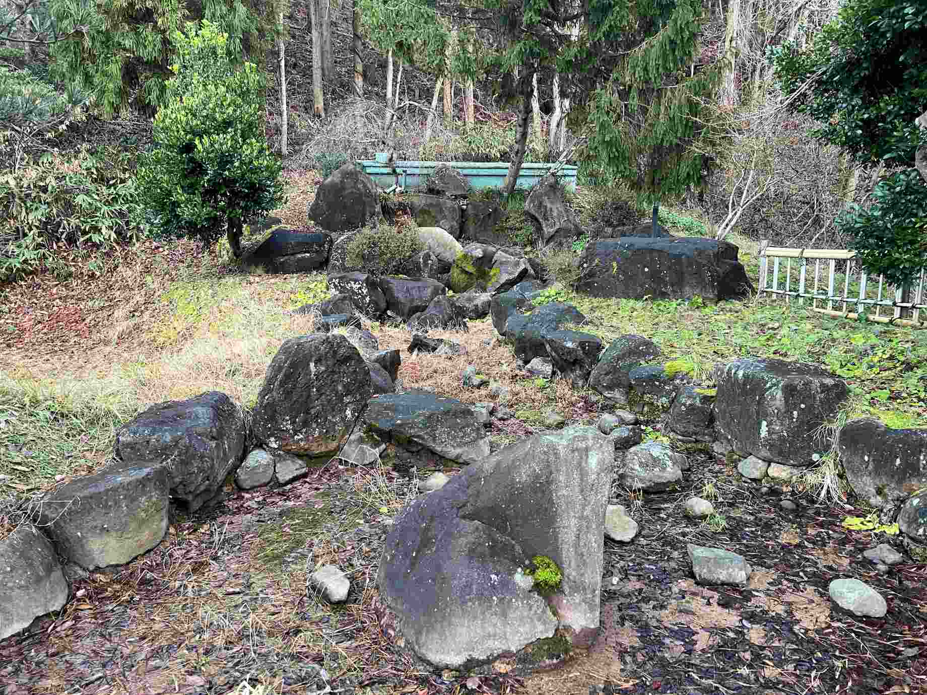 再び道の駅の方にお聞きしたところ、池の中の石は滝石組の一部で、かつては後ろのタンクに貯めた水が流れ落ちていたという。自然の力には抗えないとはいえ、静まり返った池に崩れた石が横たわる光景は、どこか物悲しさを感じる。 滝の映像 |