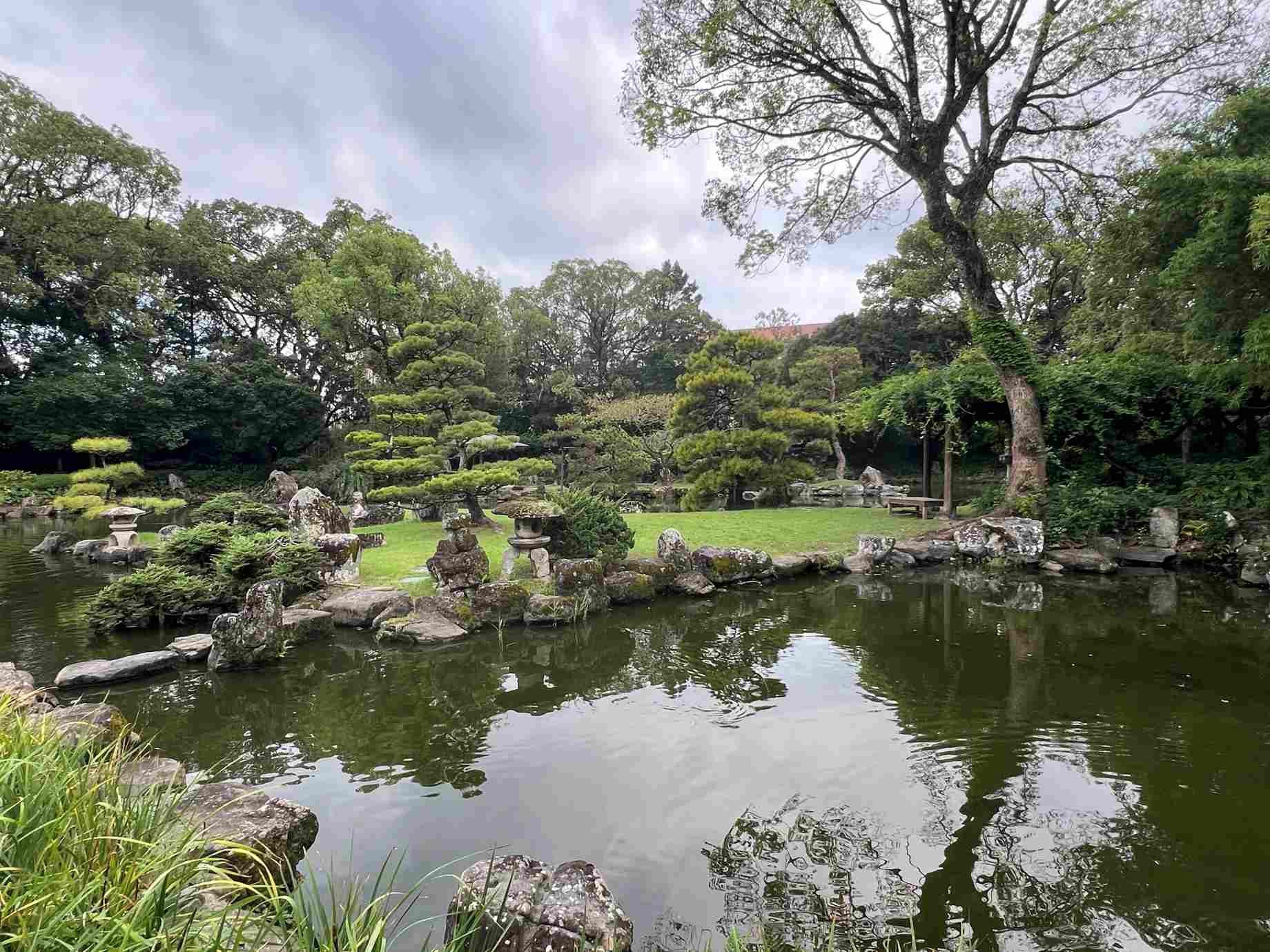 鬼ヶ城連峰を借景とした池泉回遊式の庭園で1968年に国指定名勝となります。 |