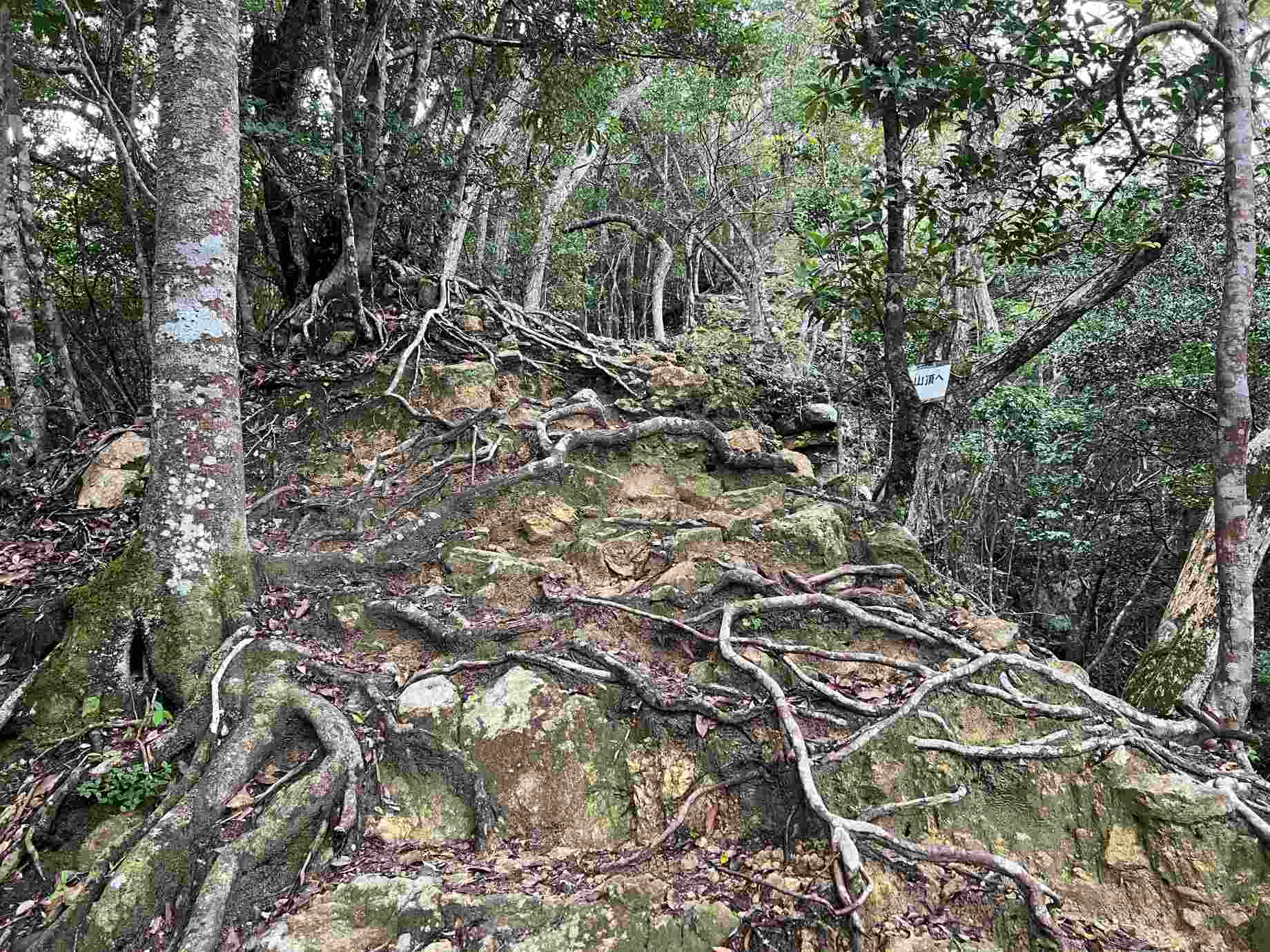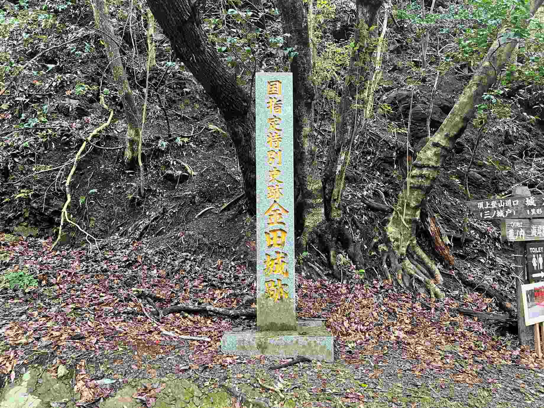 入口に停めたレンタカーがようやく見えます。金田城見学に要した時間は2時間半でした。 |