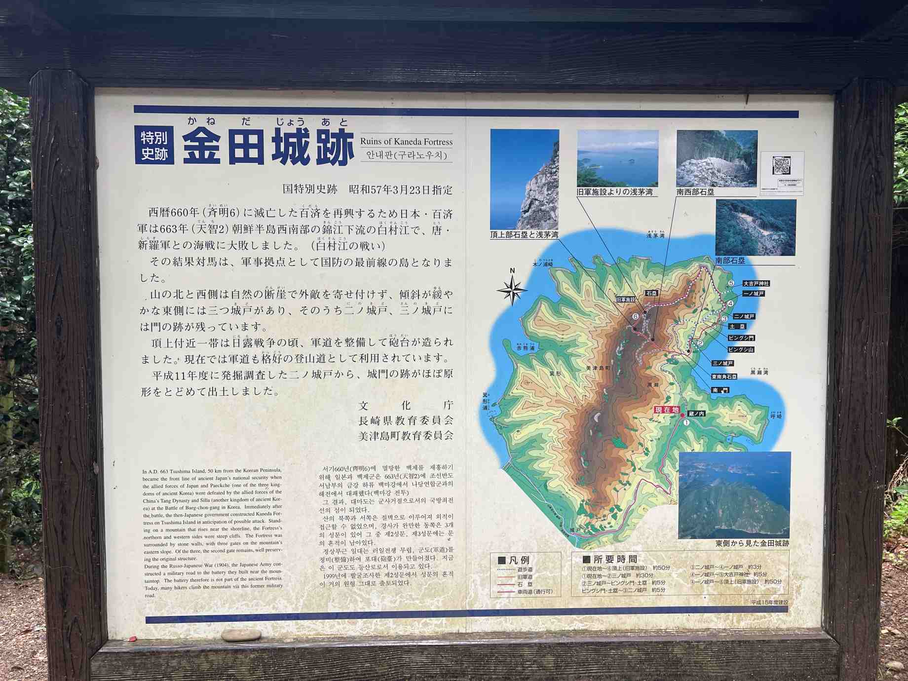 金田城は、663年の白村江の戦いで唐・新羅連合軍に敗れた大和朝廷が、667年、国防の最前線に築いた城です。 |