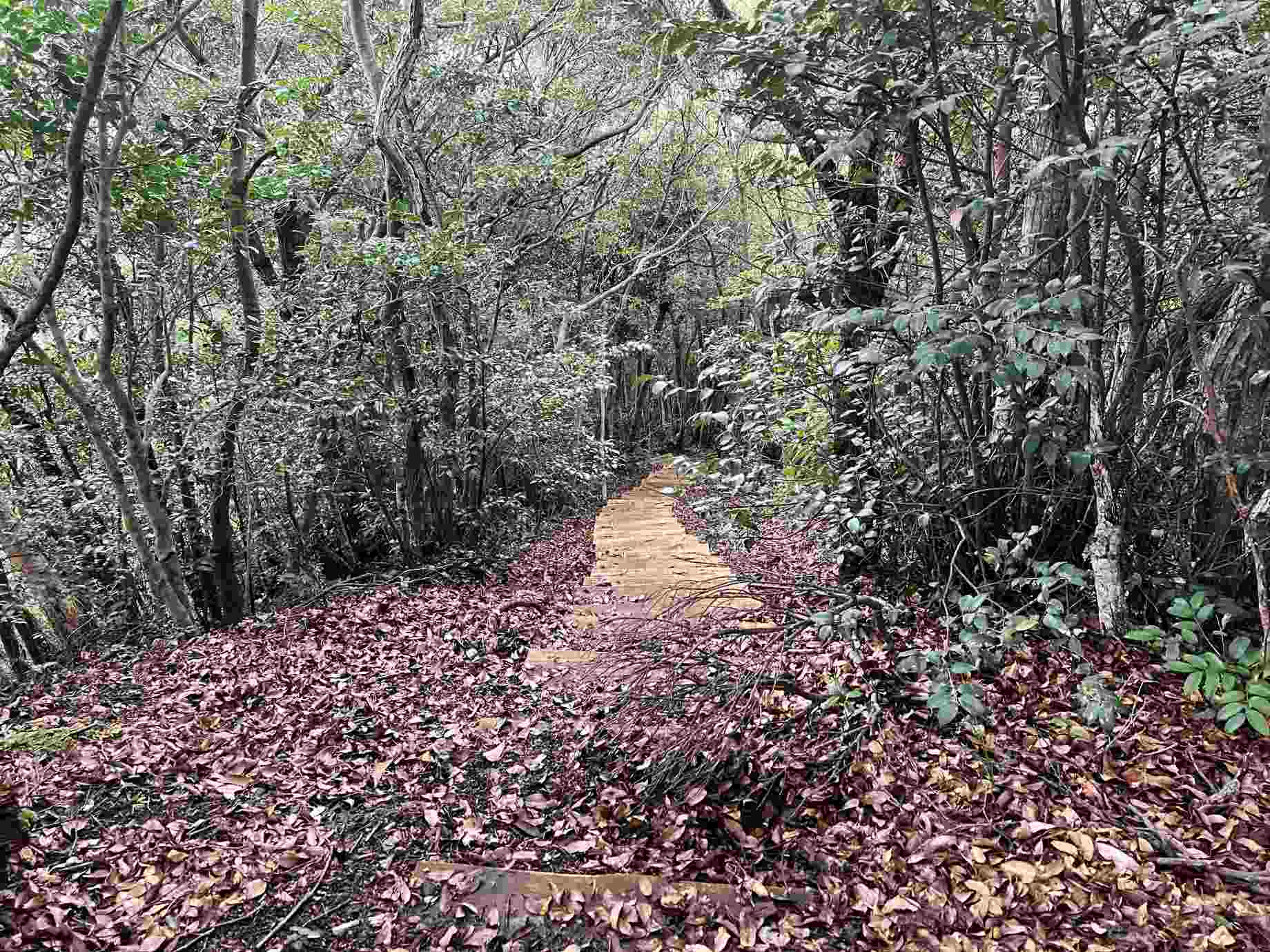 ところが途中から階段が壊れていて金具が逆に邪魔になっています。 |