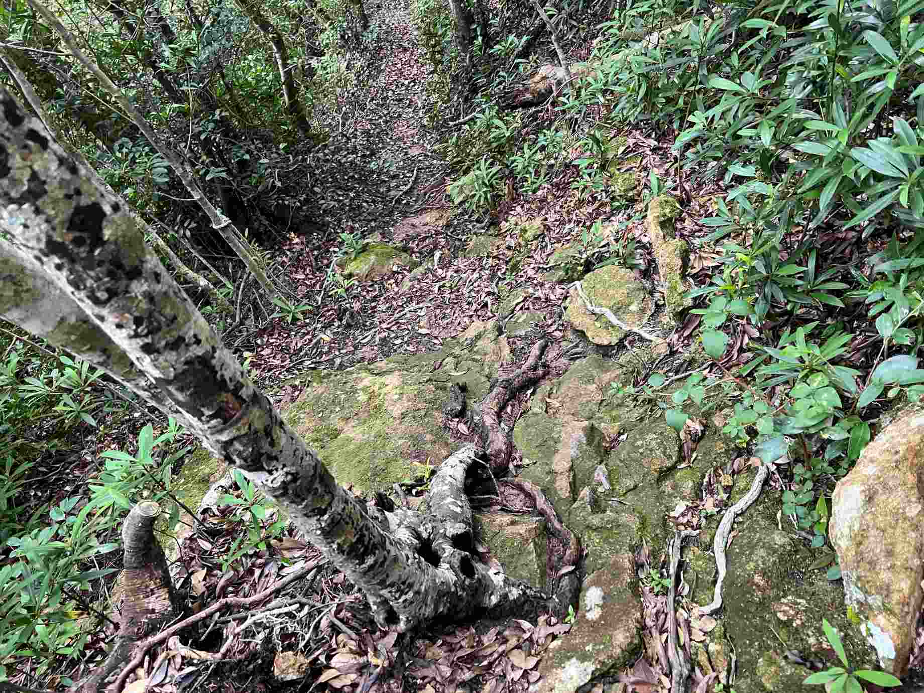 急斜面ですが、ロープもないので慎重に降ります。 |