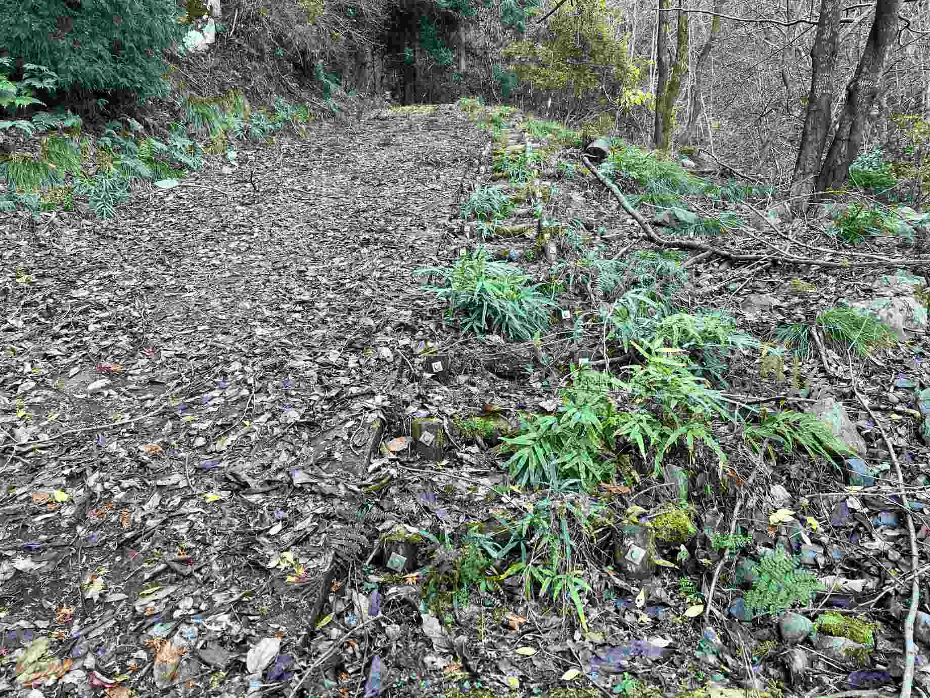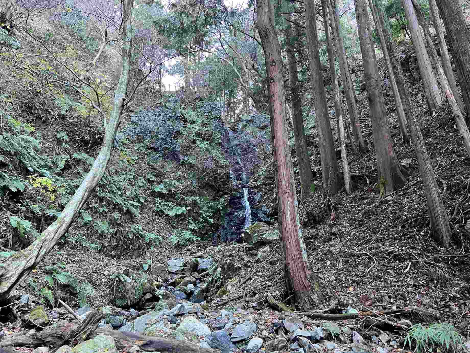 さらに進むと赤岩奥の院の手前に滝への入口があった。 |