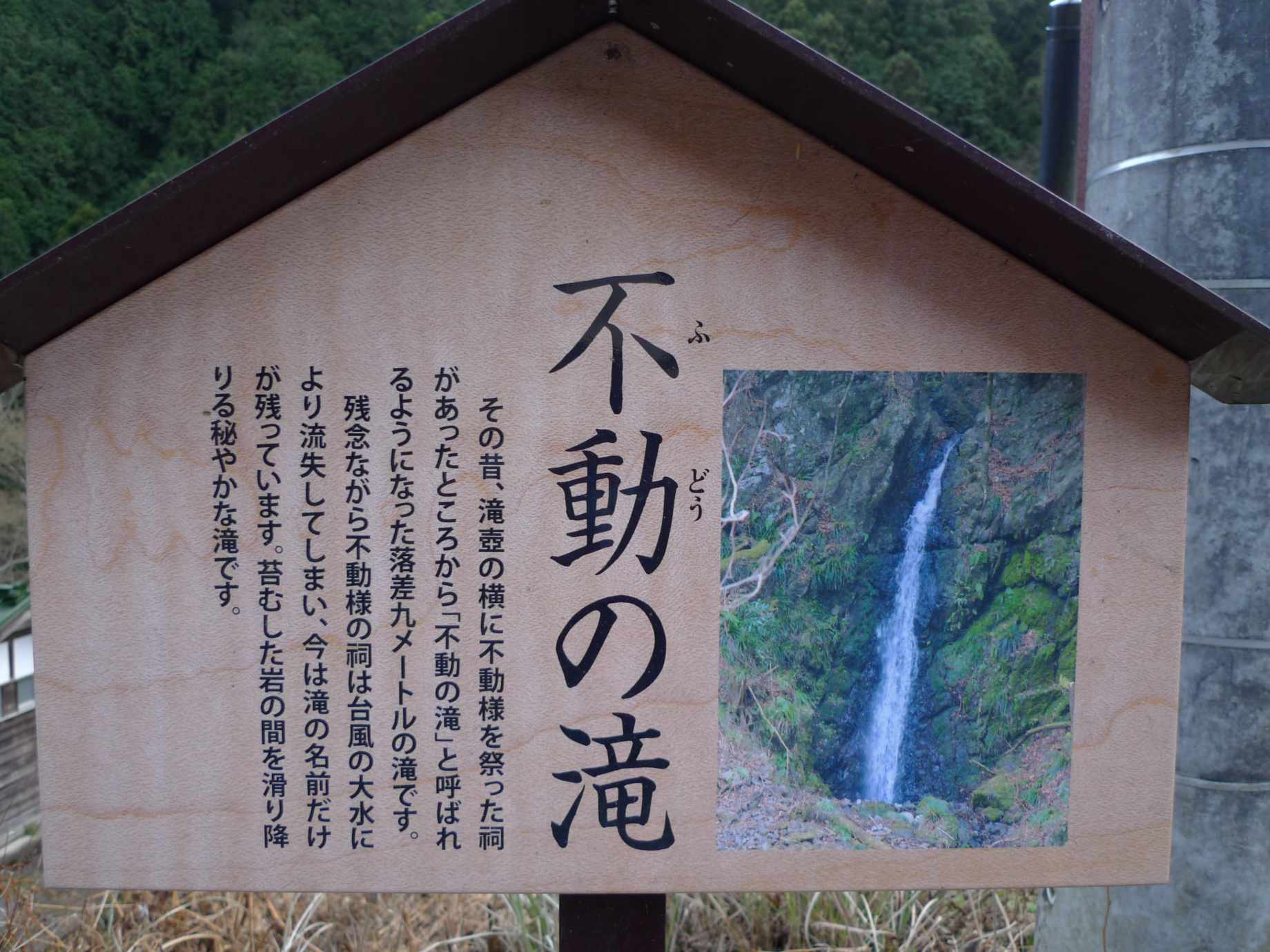 不動明王を祀る祠があったというが、台風の大水で流されてしまったと聞く。今は滝そのものが静かに信仰の名残を伝えていた。 |