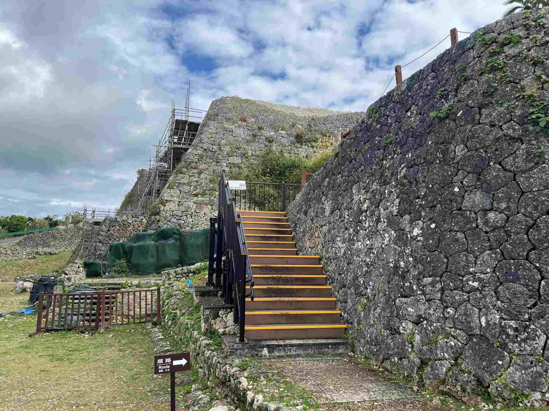 角が丸いのも琉球の城の特徴で、 琉球石灰岩が柔らかく、曲線を作りやすかったこと、 直線よりも曲線の方が自然で強度も出しやすいこと、 地形に沿う“曲線美”を重視する文化、グスクは自然の尾根や丘をそのまま活かすため、結果として曲線的な壁になること、
