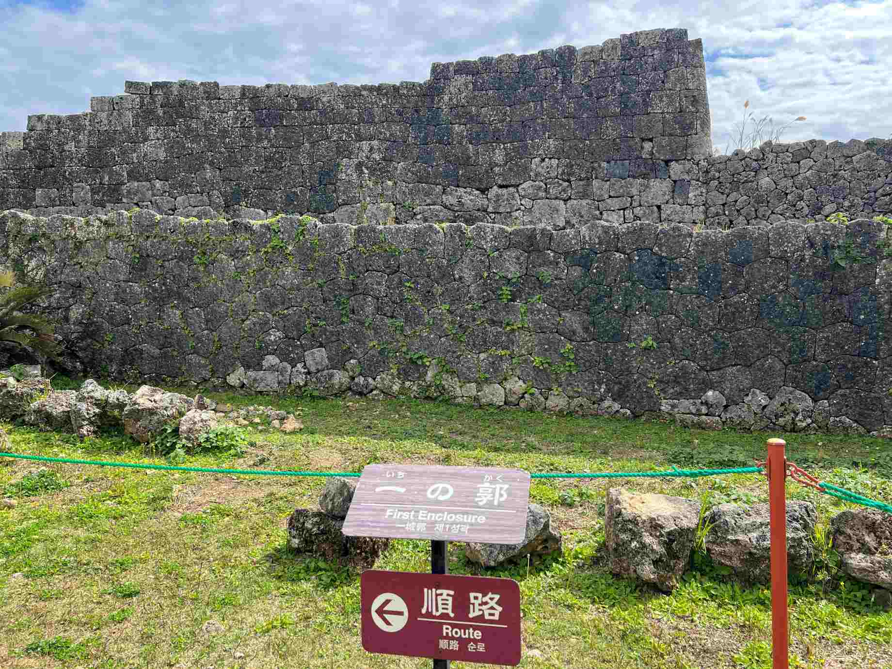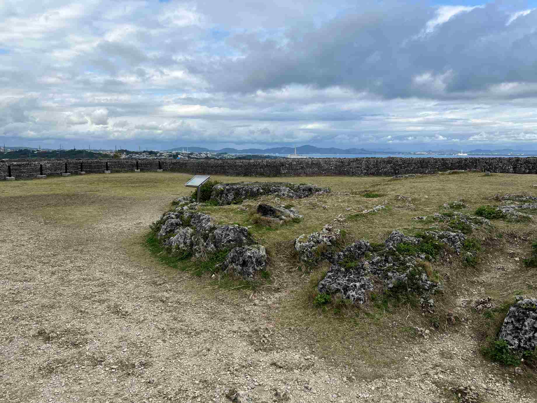 一・二・三・南・西・北の郭(曲輪)を持ち、三と北の郭を護佐丸が増築している。 |