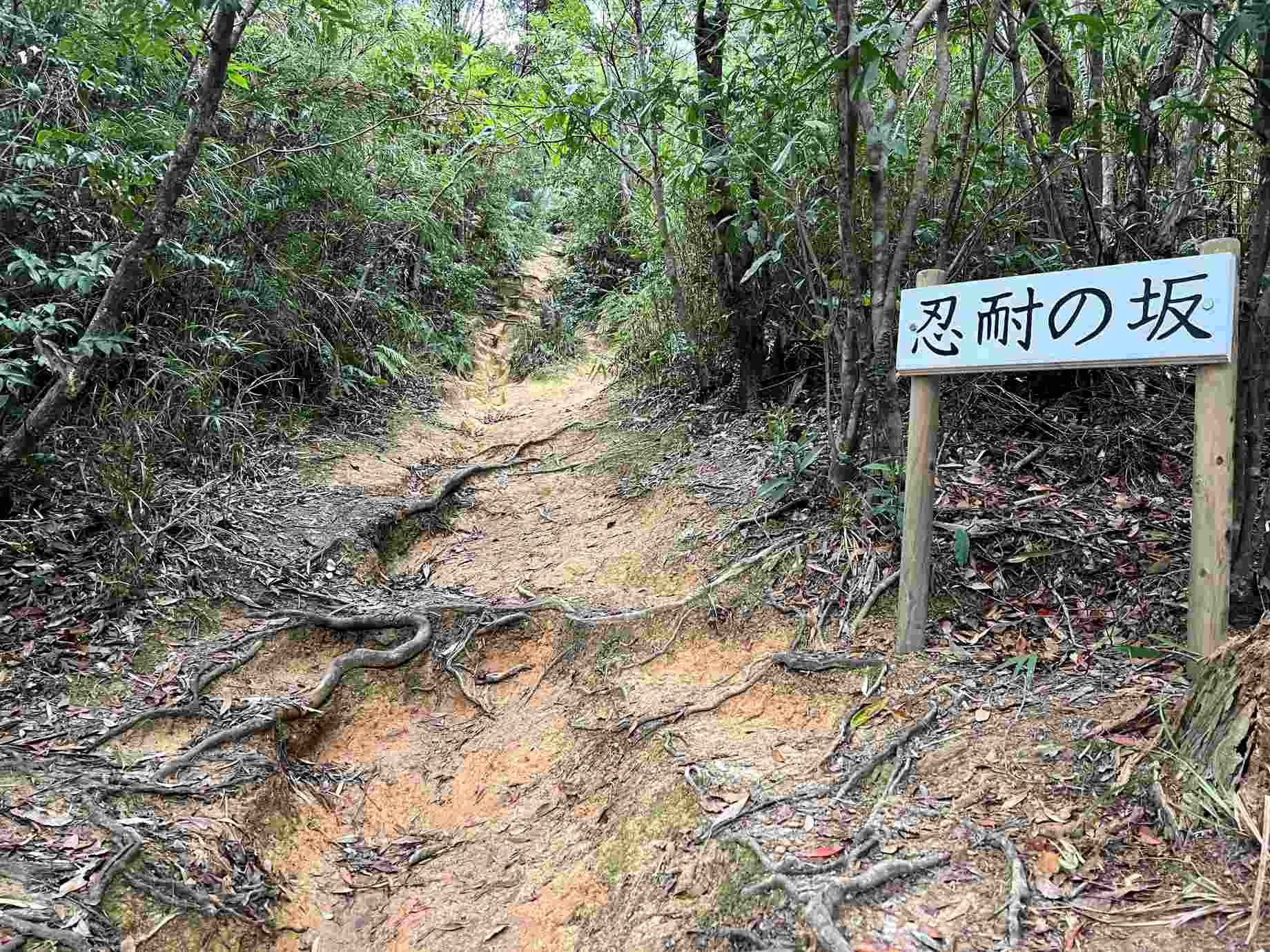 登りではあまりの急坂に無言になってしまうのだろう。 |