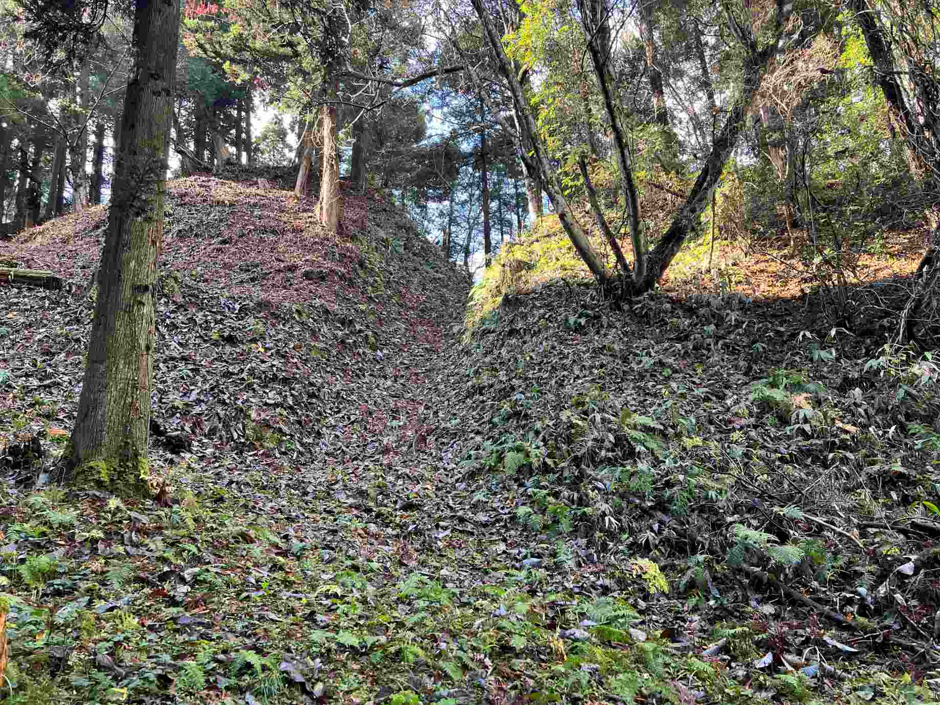 山道には堀切も残り、往時の防御の工夫が随所に見て取れる。 |