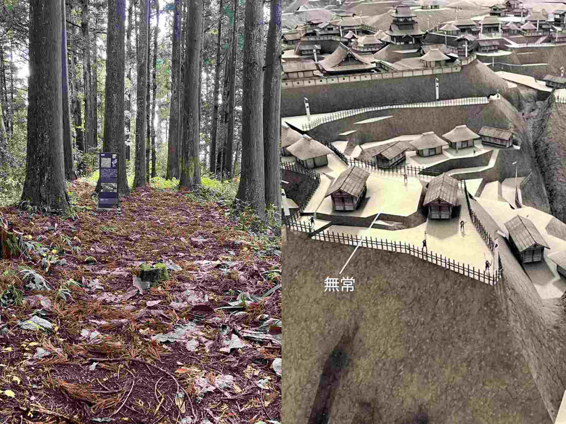二の丸から細長く伸びる尾根には「無常」と名付けられた曲輪もあった。 |