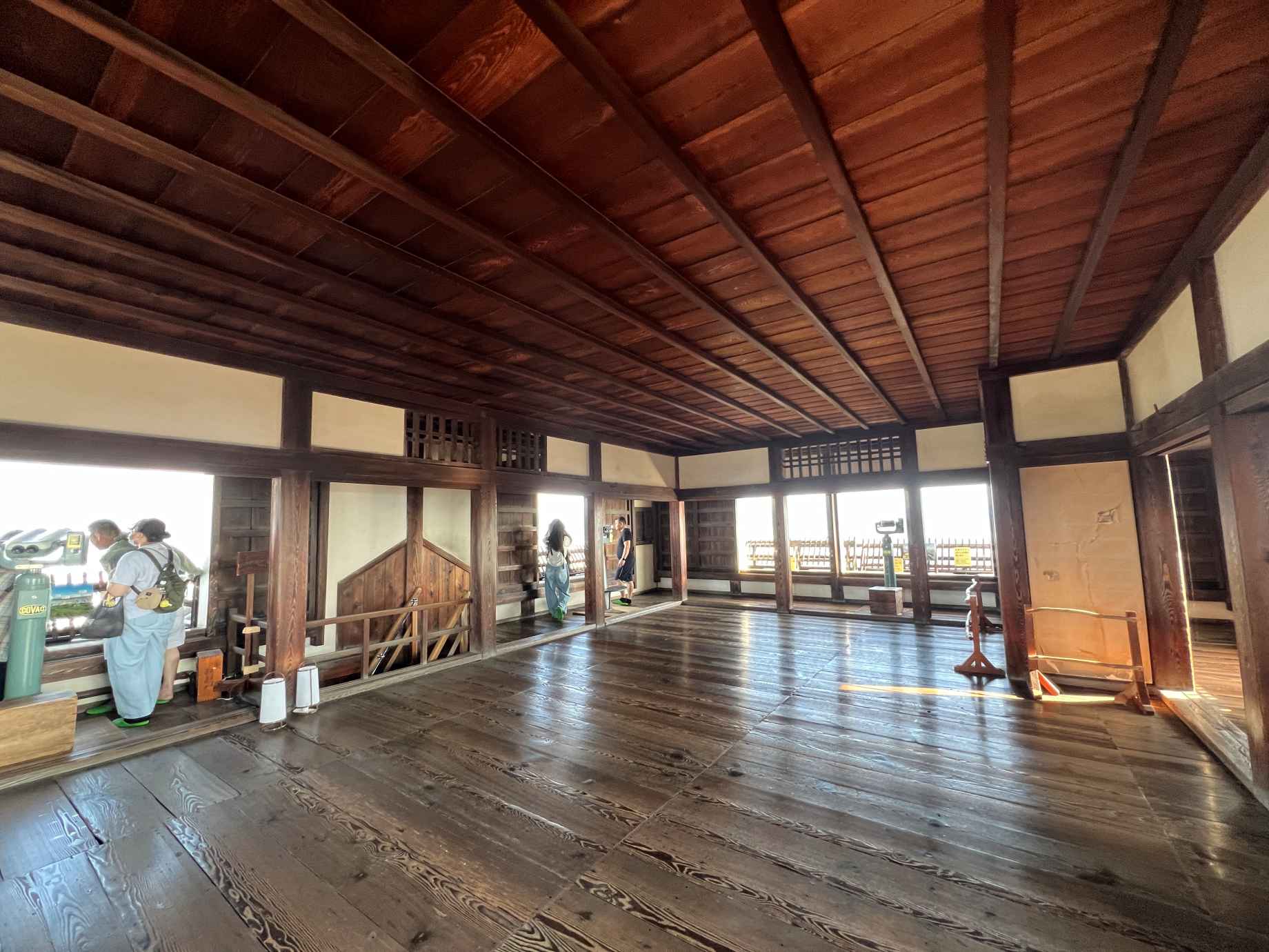 天守は戦いの設備なので床は板張りで天井板もないのが普通だ。ところが、松山城は各階に天井板があり、畳の敷ける構造になっていた。