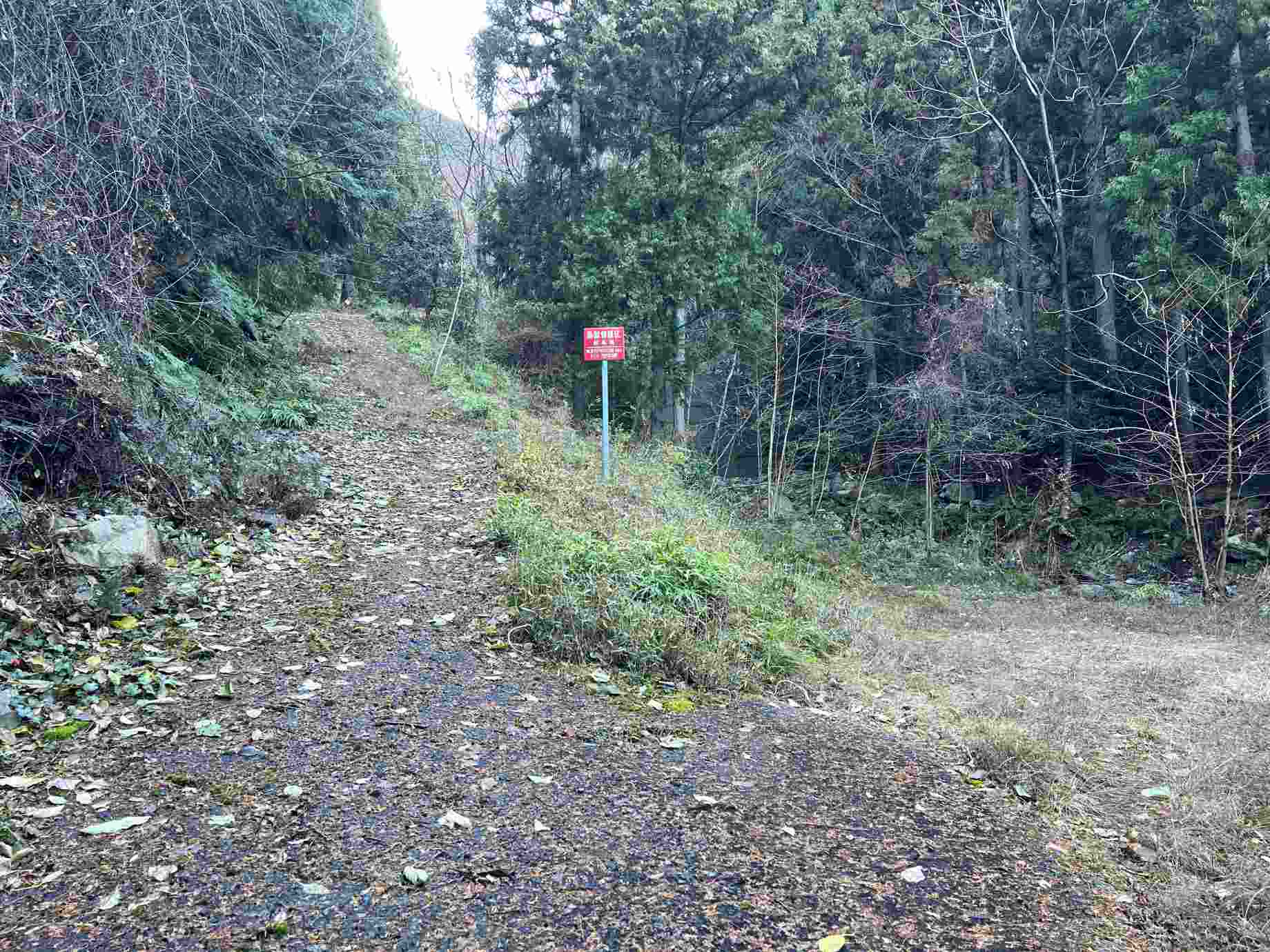 県道56号線沿いの案内板に従い林道へ入ると、大きな鳥居が迎えてくれる。 |