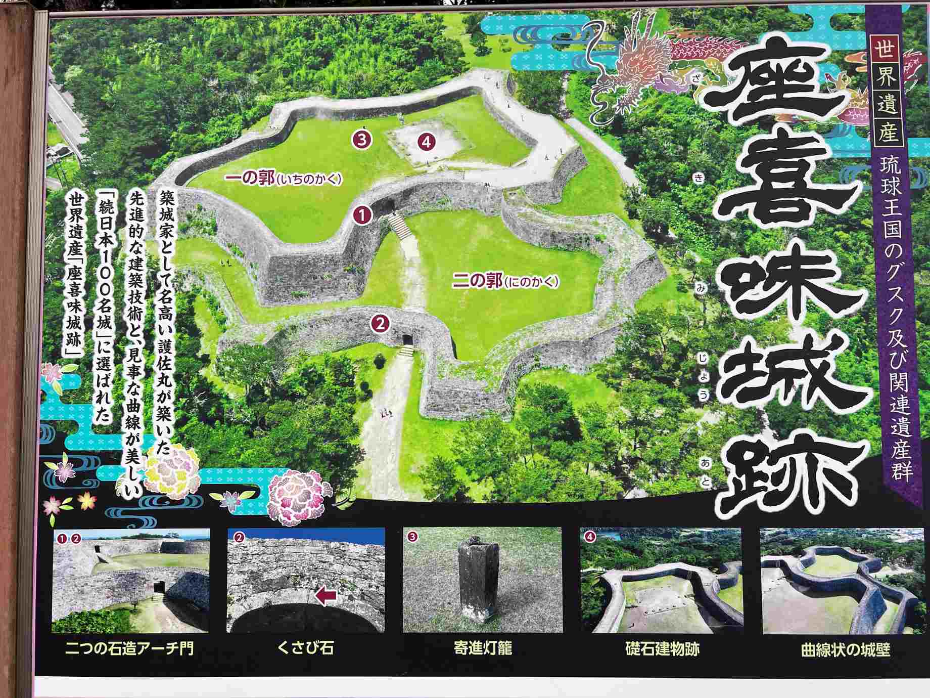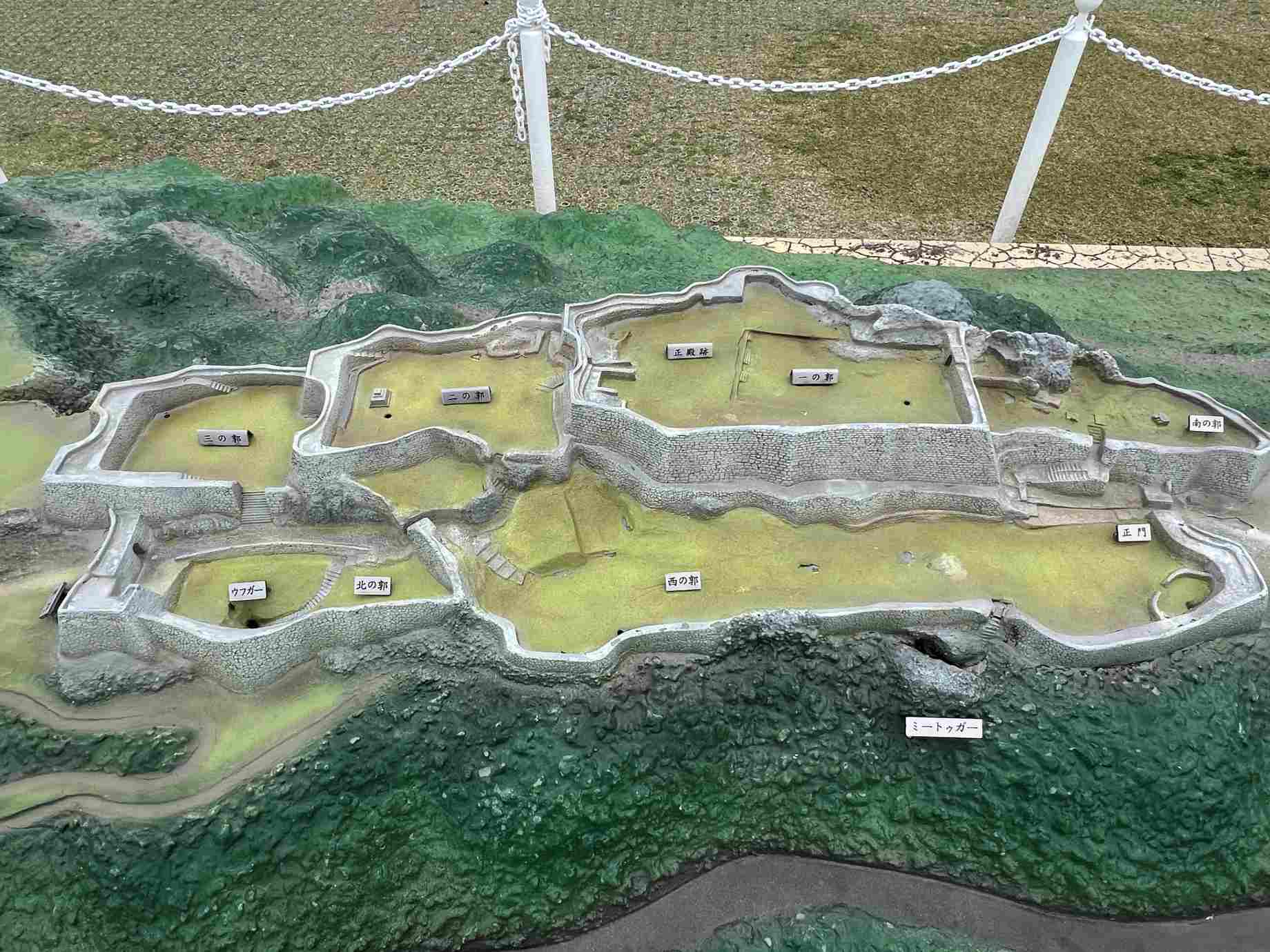 一・二・三・南・西・北の郭(曲輪)を持ち、三と北の郭を護佐丸が増築している。 |