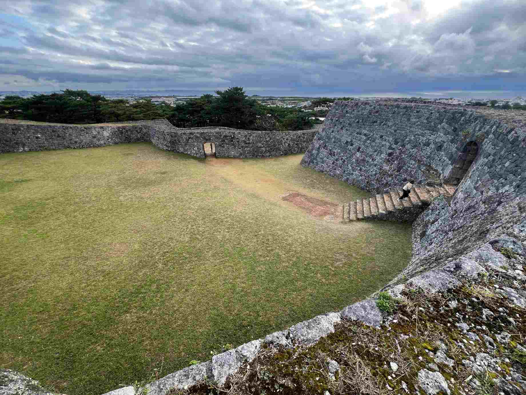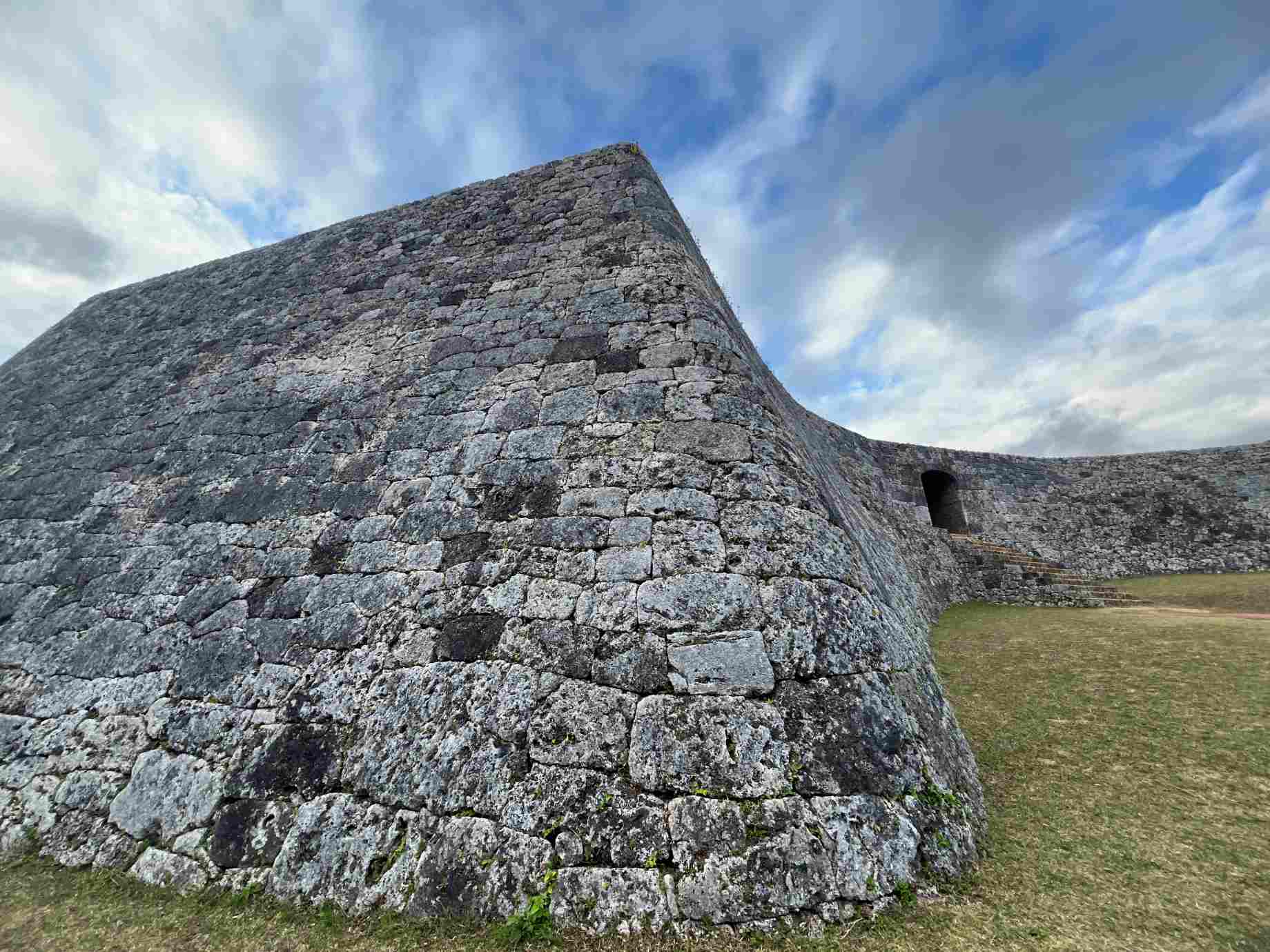 角が丸いのも琉球の城の特徴で、 琉球石灰岩が柔らかく、曲線を作りやすかったこと、 直線よりも曲線の方が自然で強度も出しやすいこと、 地形に沿う“曲線美”を重視する文化、グスクは自然の尾根や丘をそのまま活かすため、結果として曲線的な壁になること、