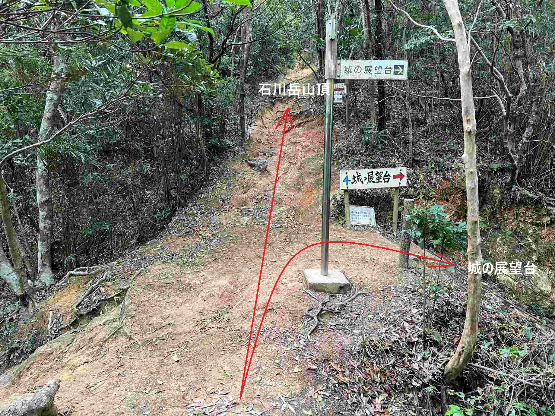 峠に到着。右へ行くと石川岳山頂だが、ここを左へと曲がる。 |