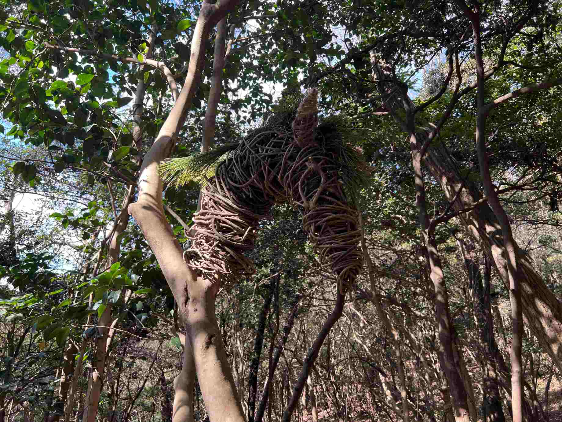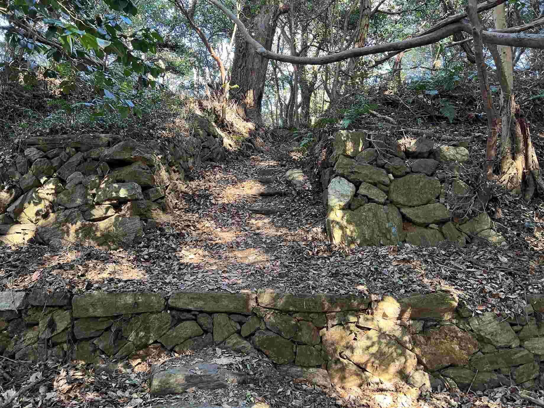 山道をそのまま進み大井池方面へ向かう途中、猿田彦三河神社の参道入口に滝がかかっていた。 |
